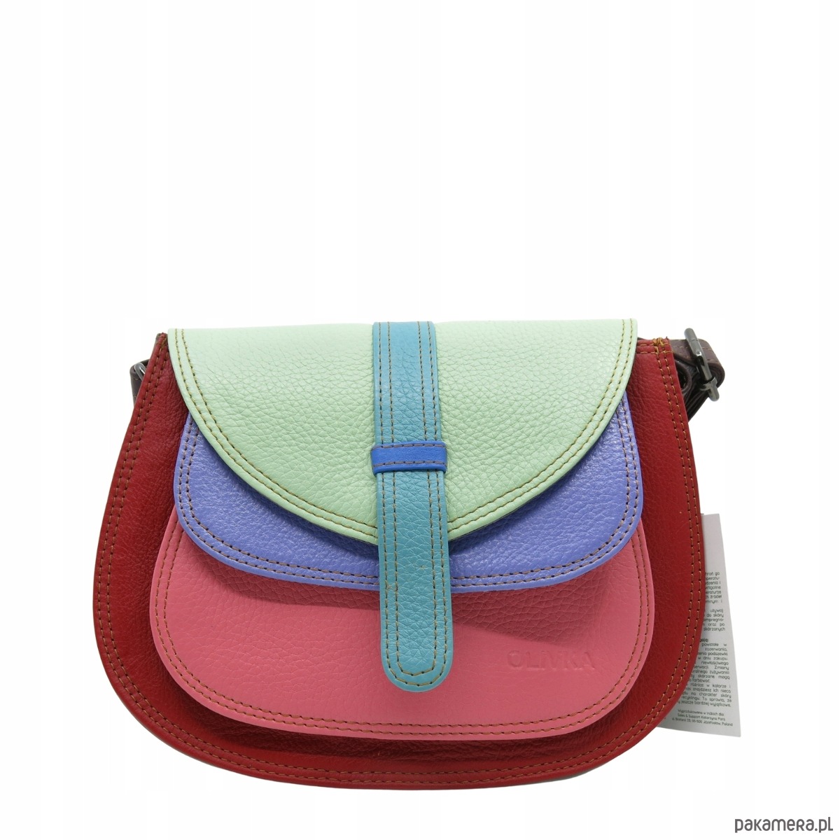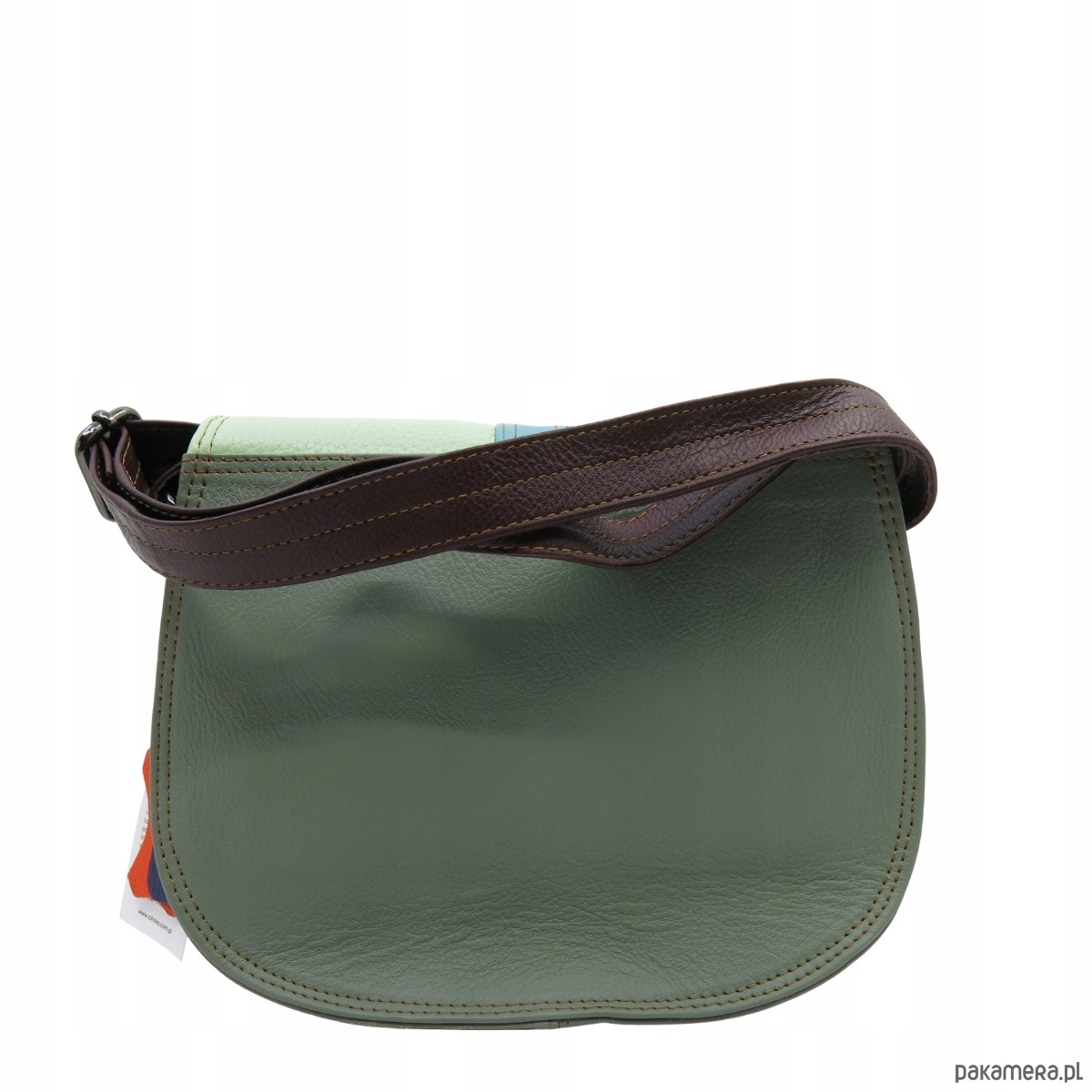 Torebka damska na ramię skórzana pojemna kolorowa ze skrawków eko OLIVKA