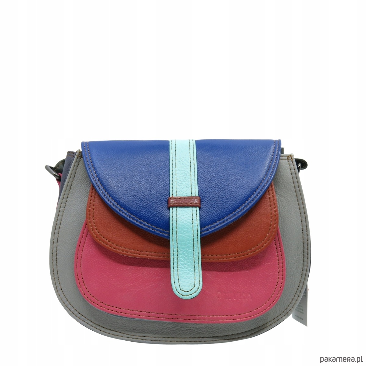 Torebka damska na ramię skórzana pojemna kolorowa ze skrawków eko OLIVKA