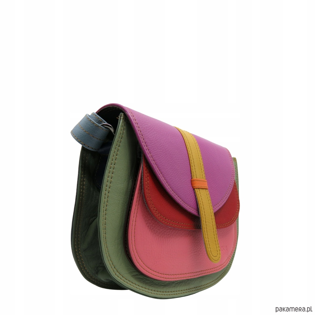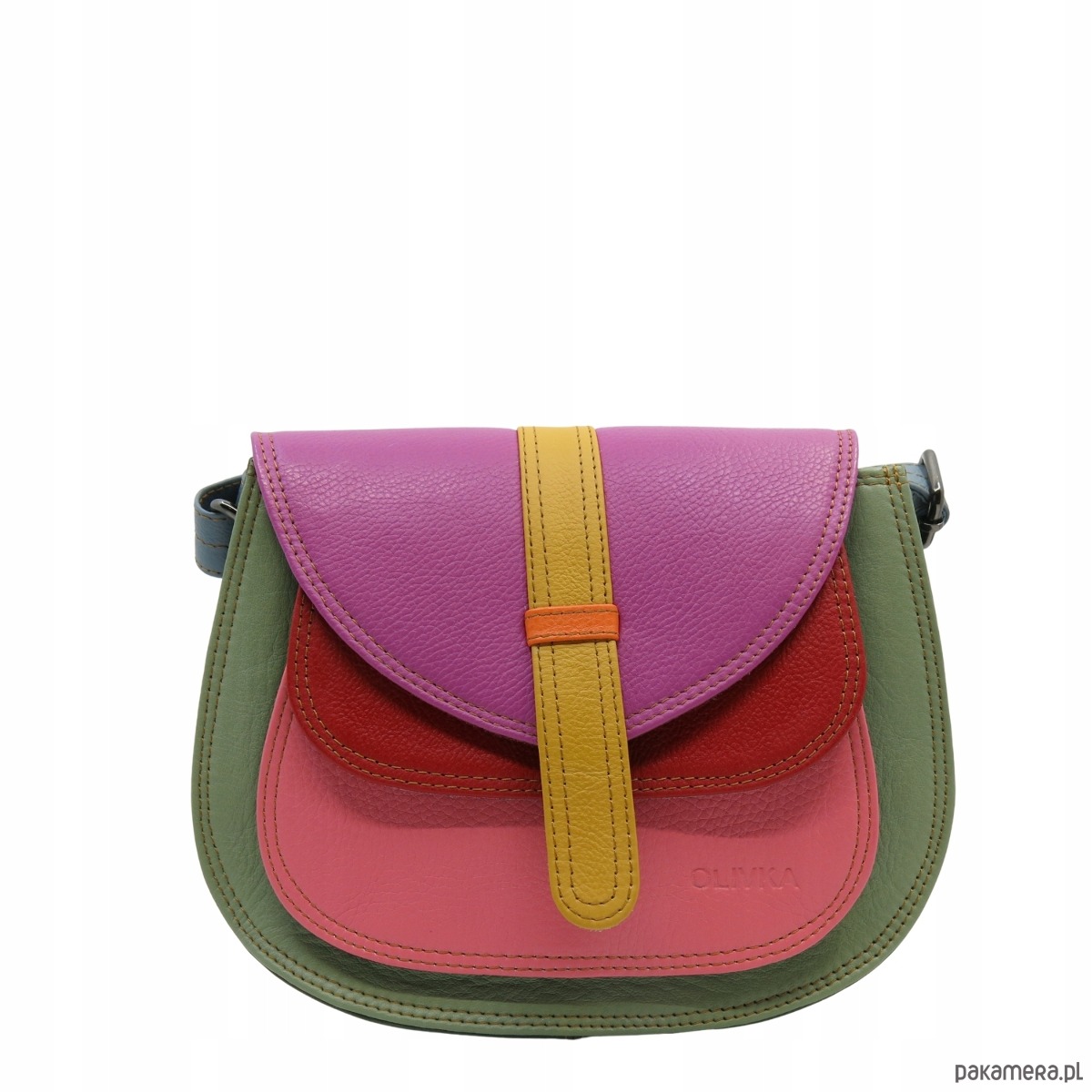 Torebka damska na ramię skórzana pojemna kolorowa ze skrawków eko OLIVKA