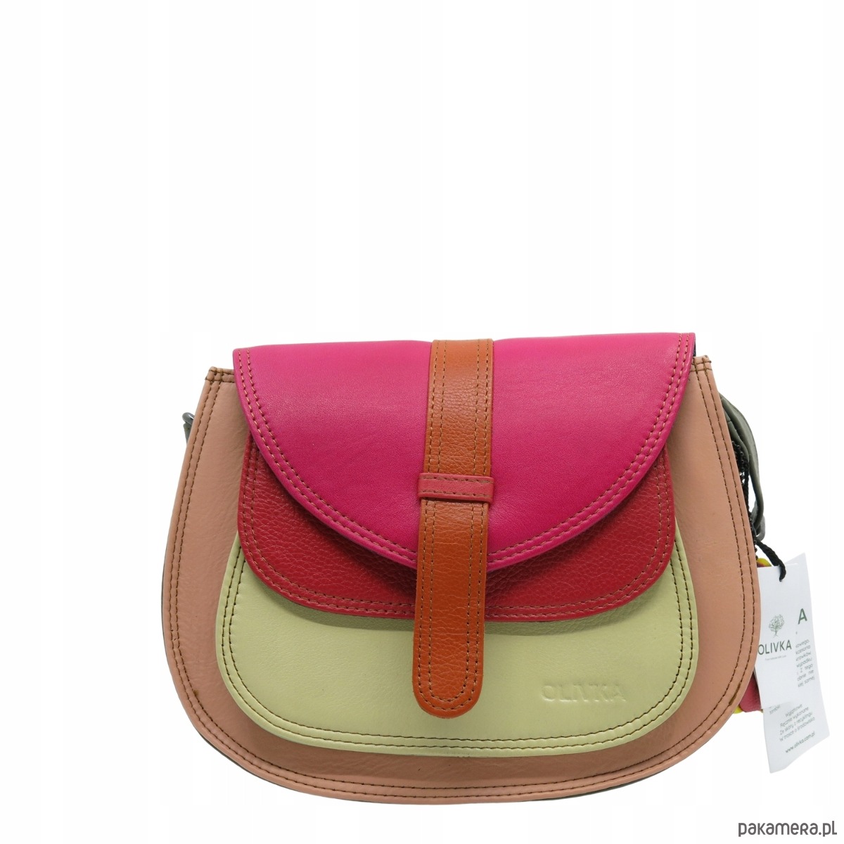 Torebka damska na ramię skórzana pojemna kolorowa ze skrawków eko OLIVKA