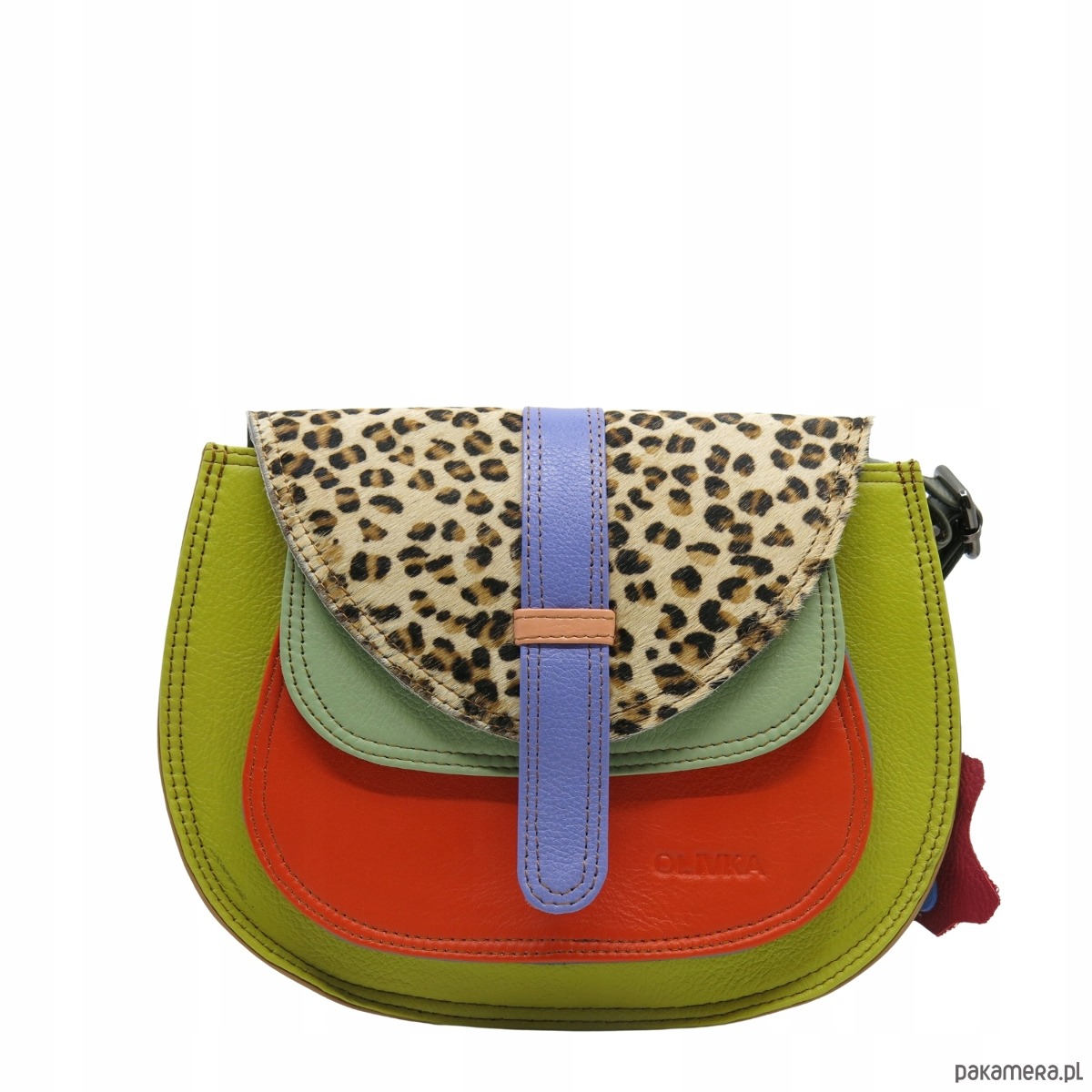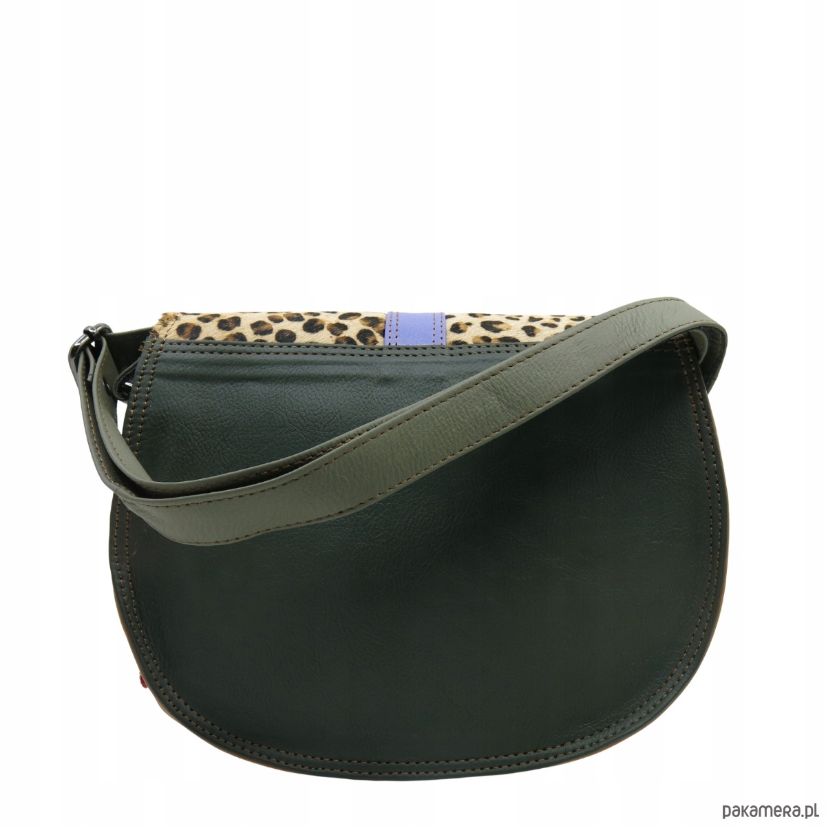 Torebka damska na ramię skórzana pojemna kolorowa ze skrawków eko OLIVKA
