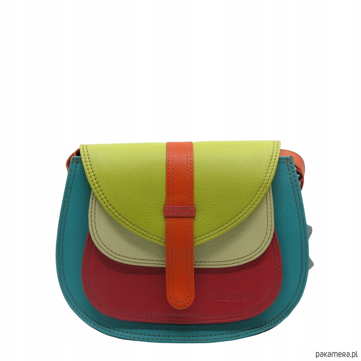 Torebka damska na ramię skórzana pojemna kolorowa ze skrawków eko OLIVKA