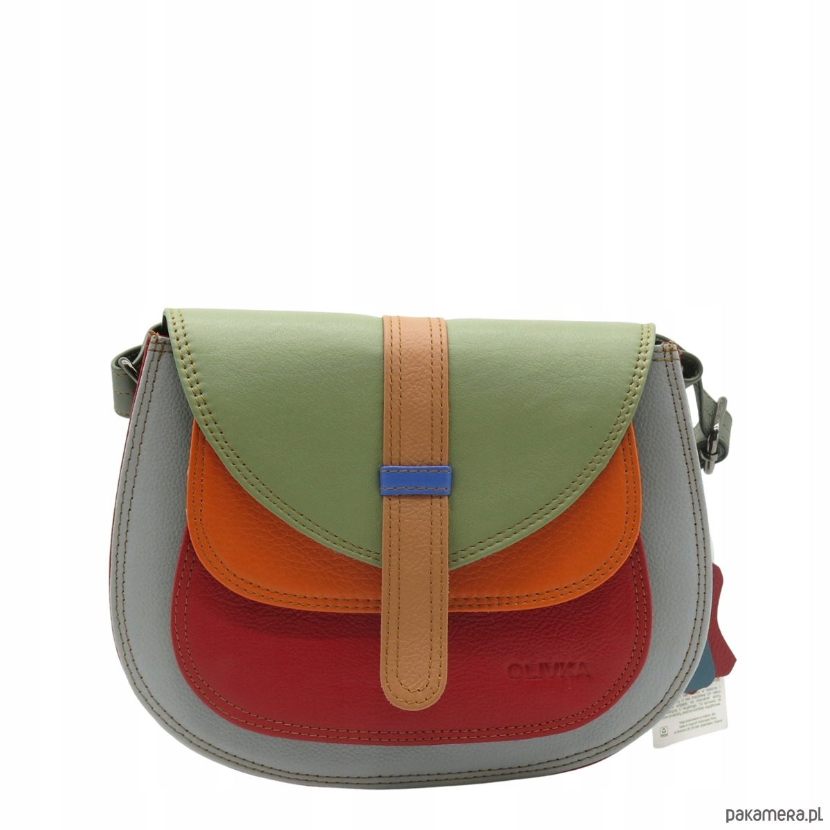 Torebka damska na ramię skórzana pojemna kolorowa ze skrawków eko OLIVKA