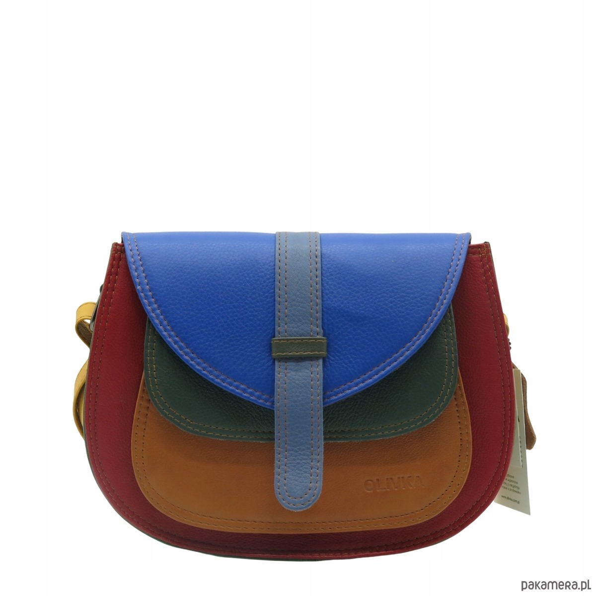 Torebka damska na ramię skórzana pojemna kolorowa ze skrawków eko OLIVKA