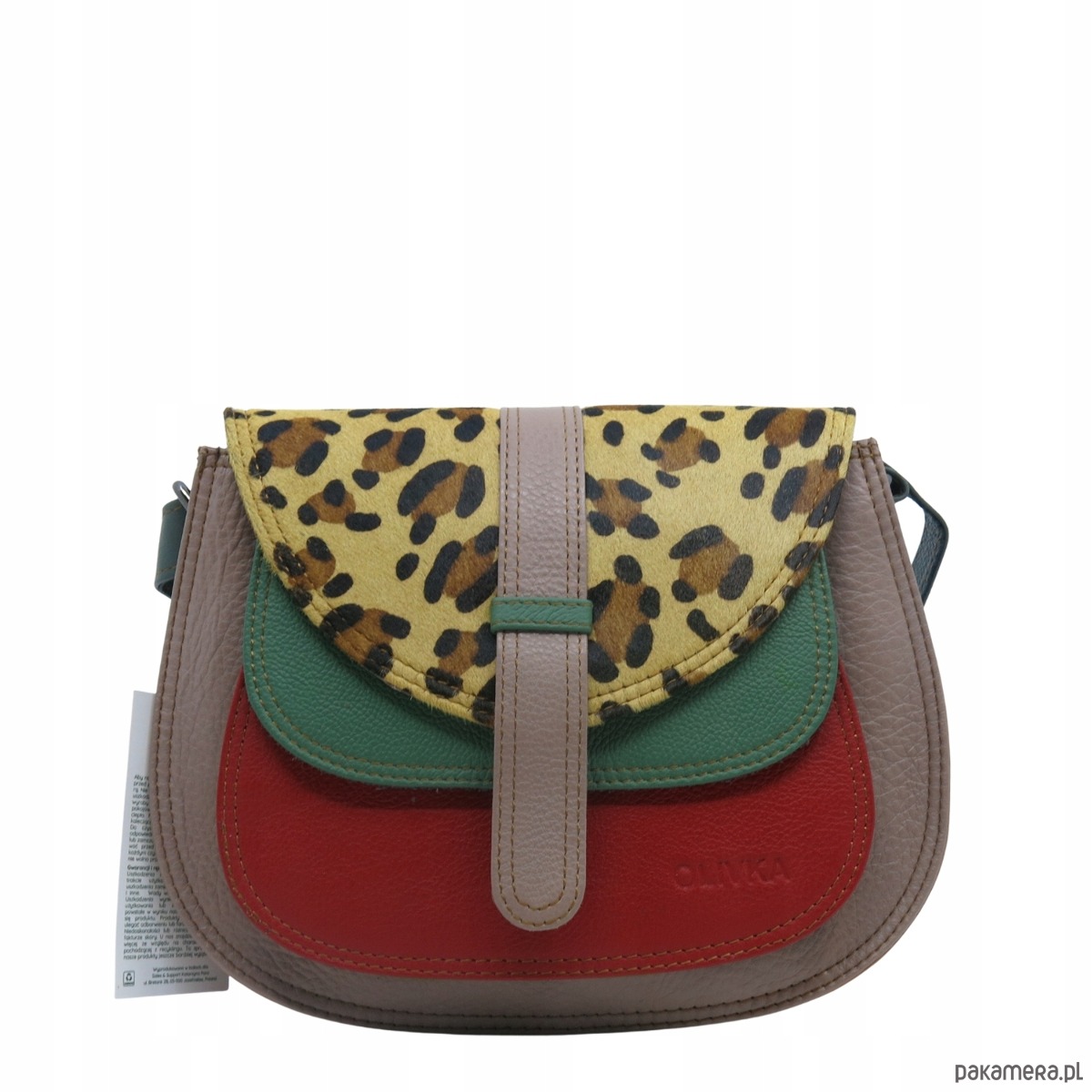 Torebka damska na ramię skórzana pojemna kolorowa ze skrawków eko OLIVKA