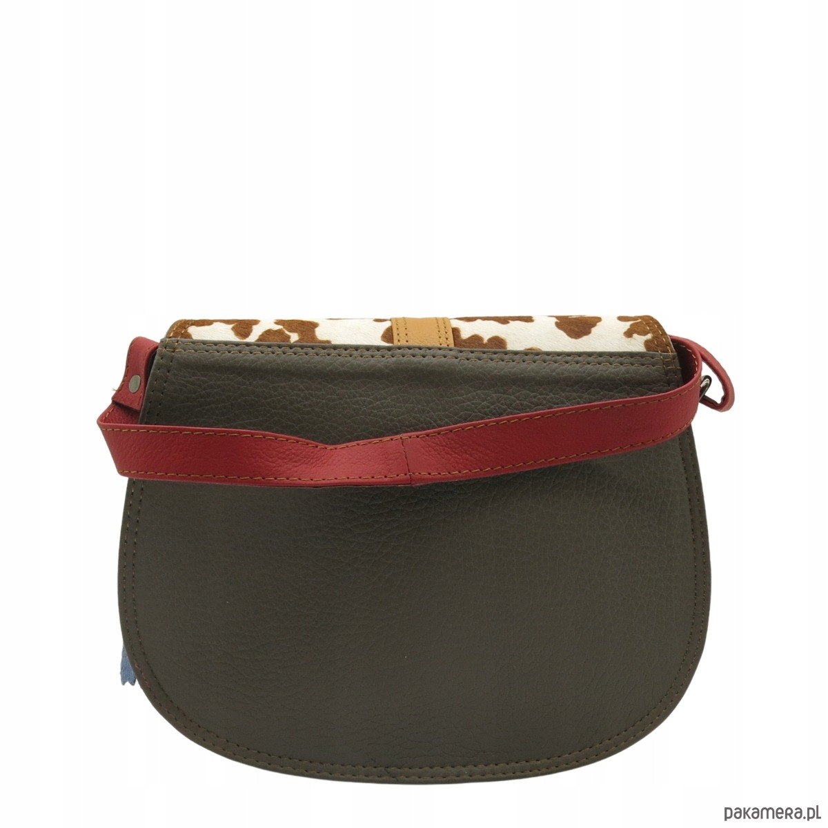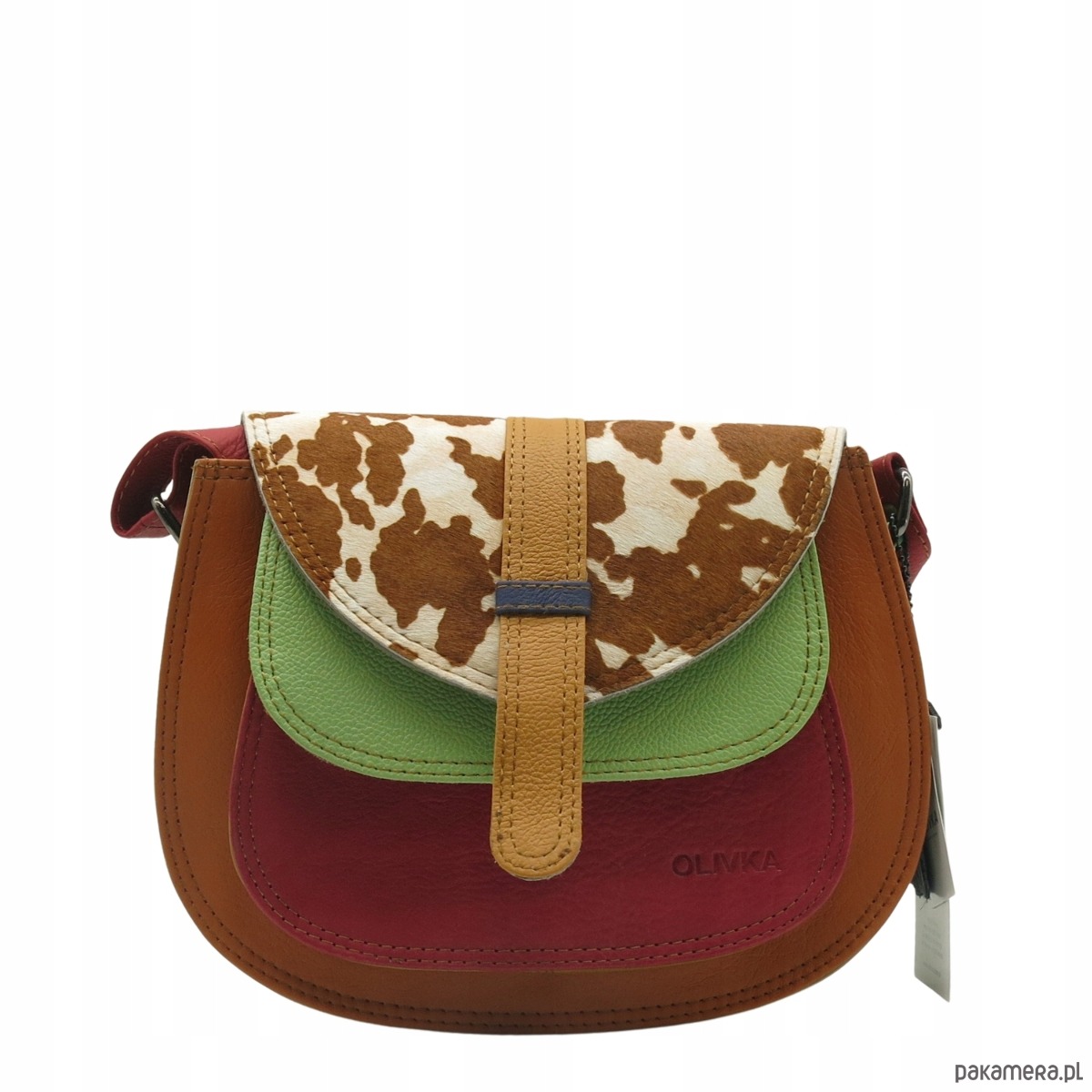 Torebka damska na ramię skórzana pojemna kolorowa ze skrawków eko OLIVKA