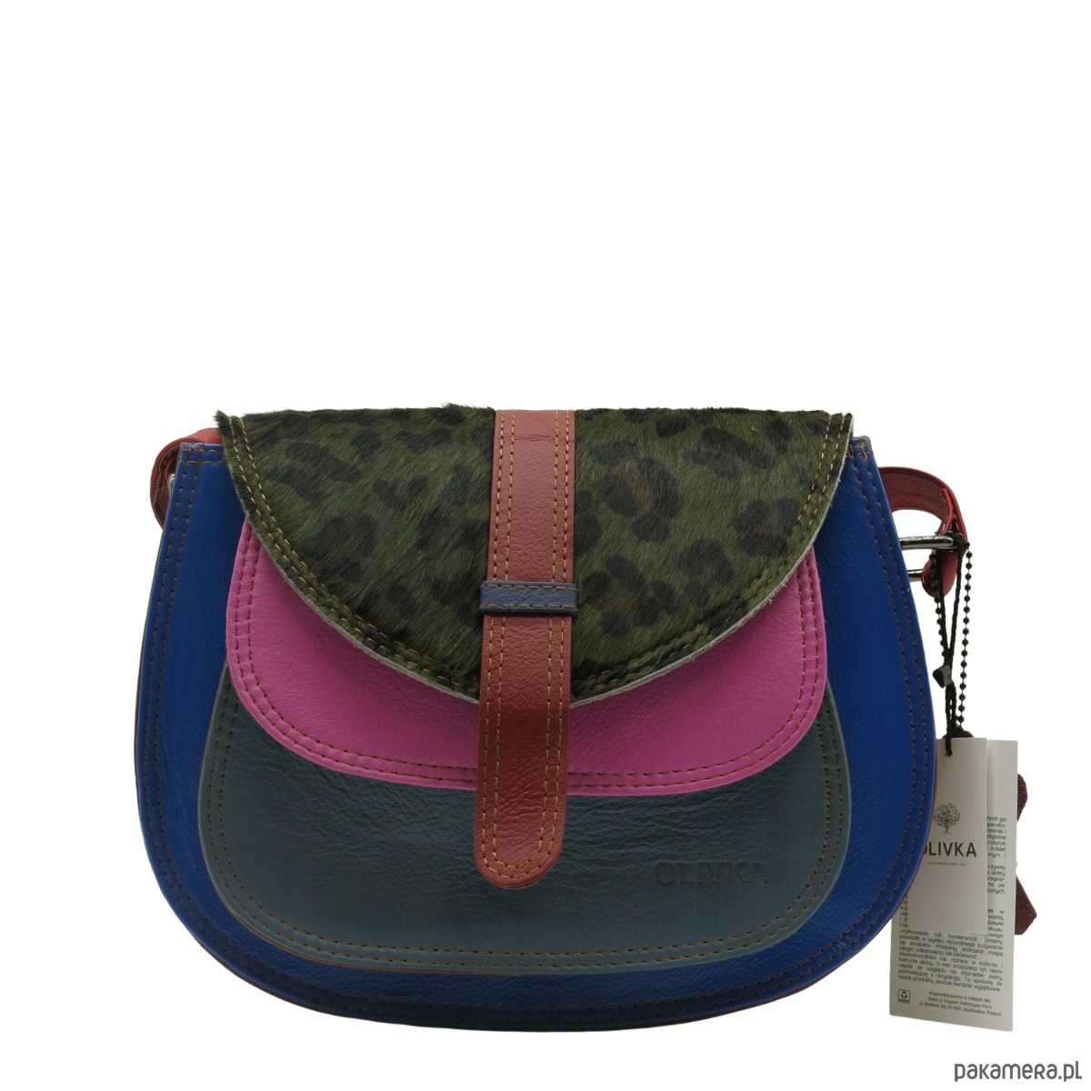 Torebka damska na ramię skórzana pojemna kolorowa ze skrawków eko OLIVKA