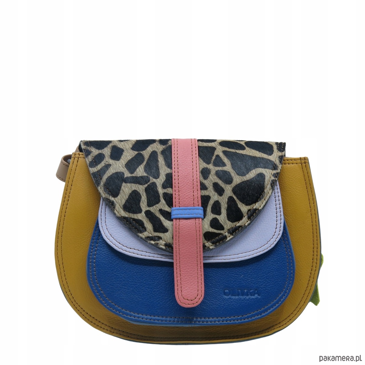 Torebka damska na ramię skórzana pojemna kolorowa ze skrawków eko OLIVKA
