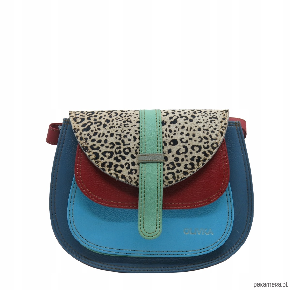 Torebka damska na ramię skórzana pojemna kolorowa ze skrawków eko OLIVKA