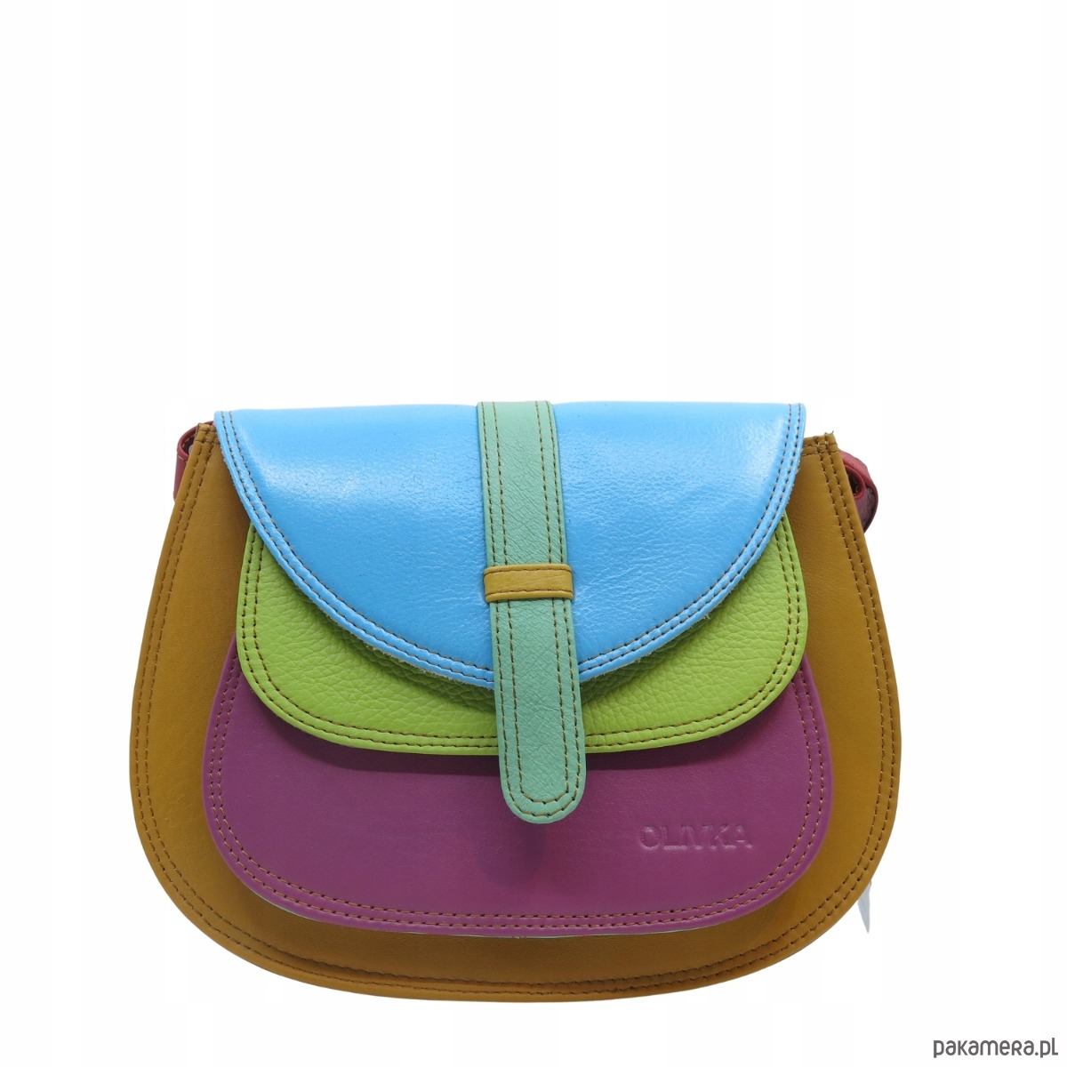 Torebka damska na ramię skórzana pojemna kolorowa ze skrawków eko OLIVKA