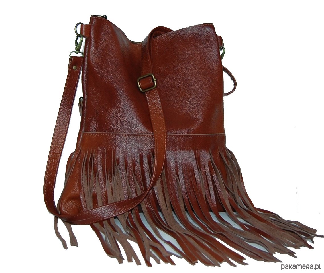 Torebka damska na ramię z frędzlami ze skóry naturalnej