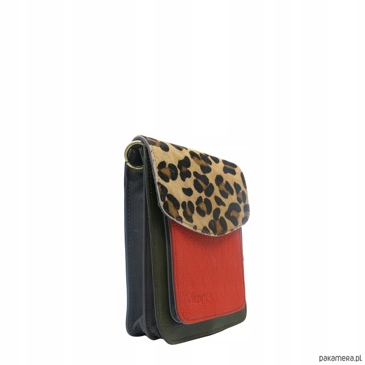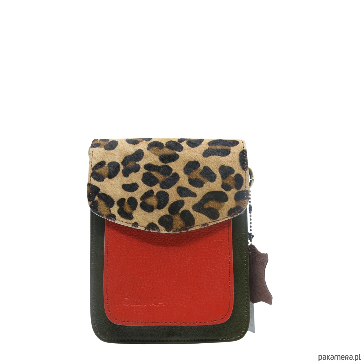 Torebka damska na telefon listonoszka skóra naturalna eko OLIVKA