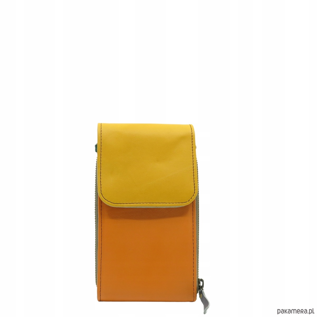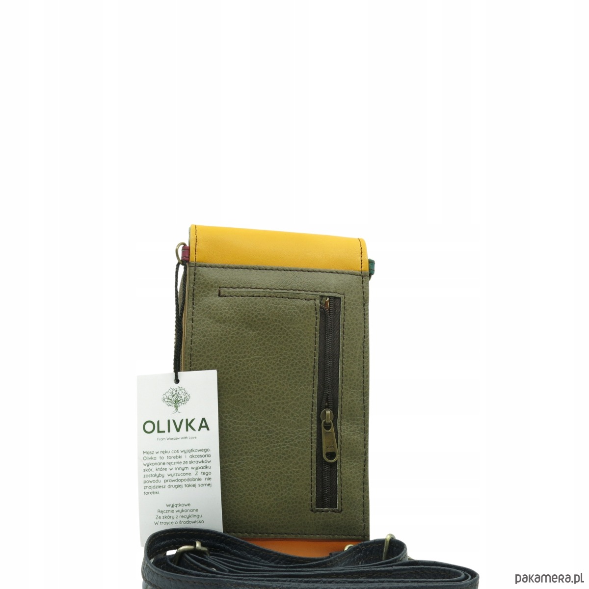 Torebka damska na telefon listonoszka skórzana regulowany pasek OLIVKA