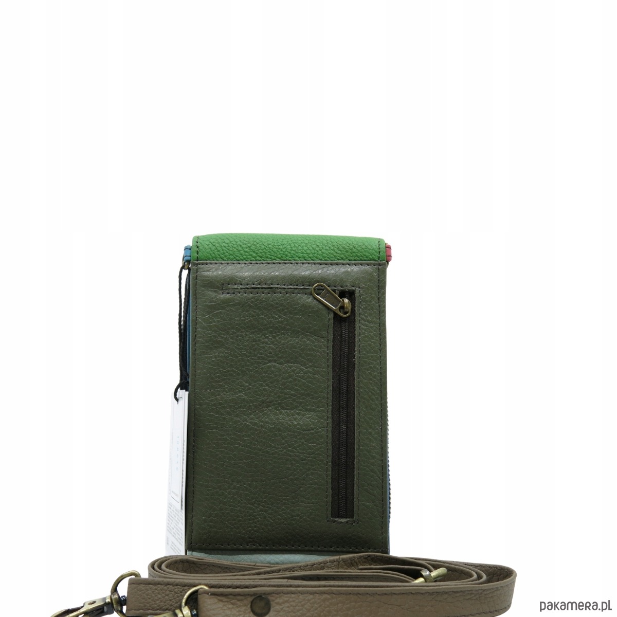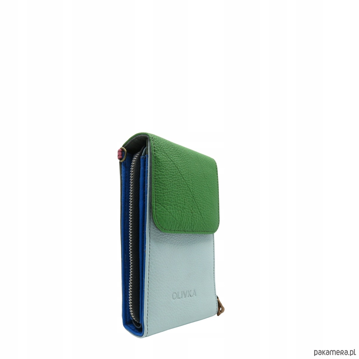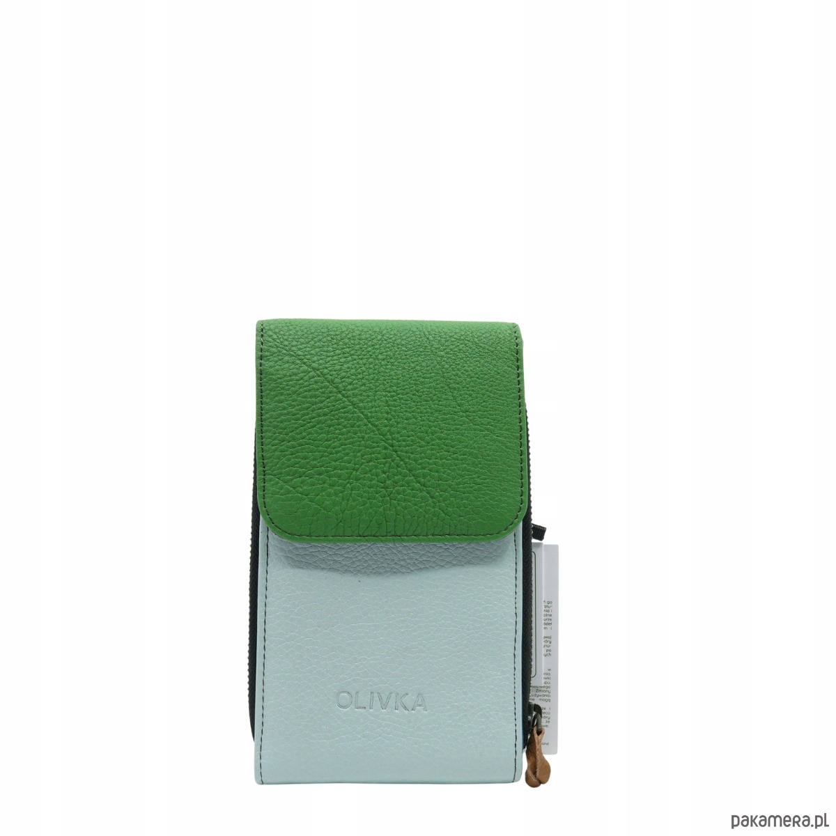 Torebka damska na telefon listonoszka skórzana regulowany pasek OLIVKA