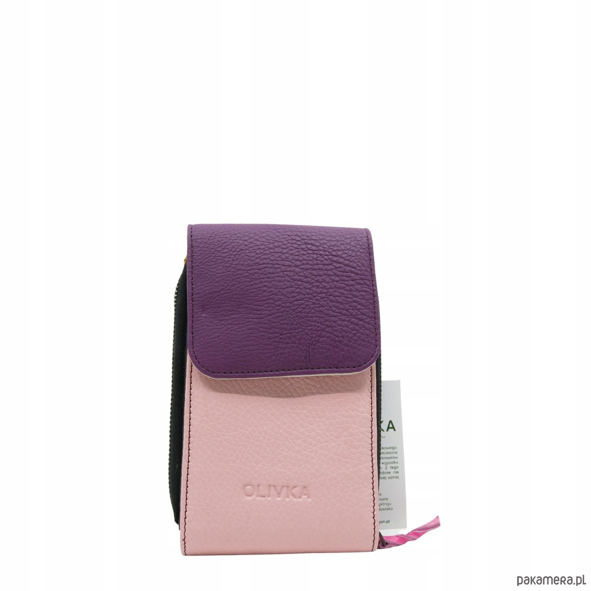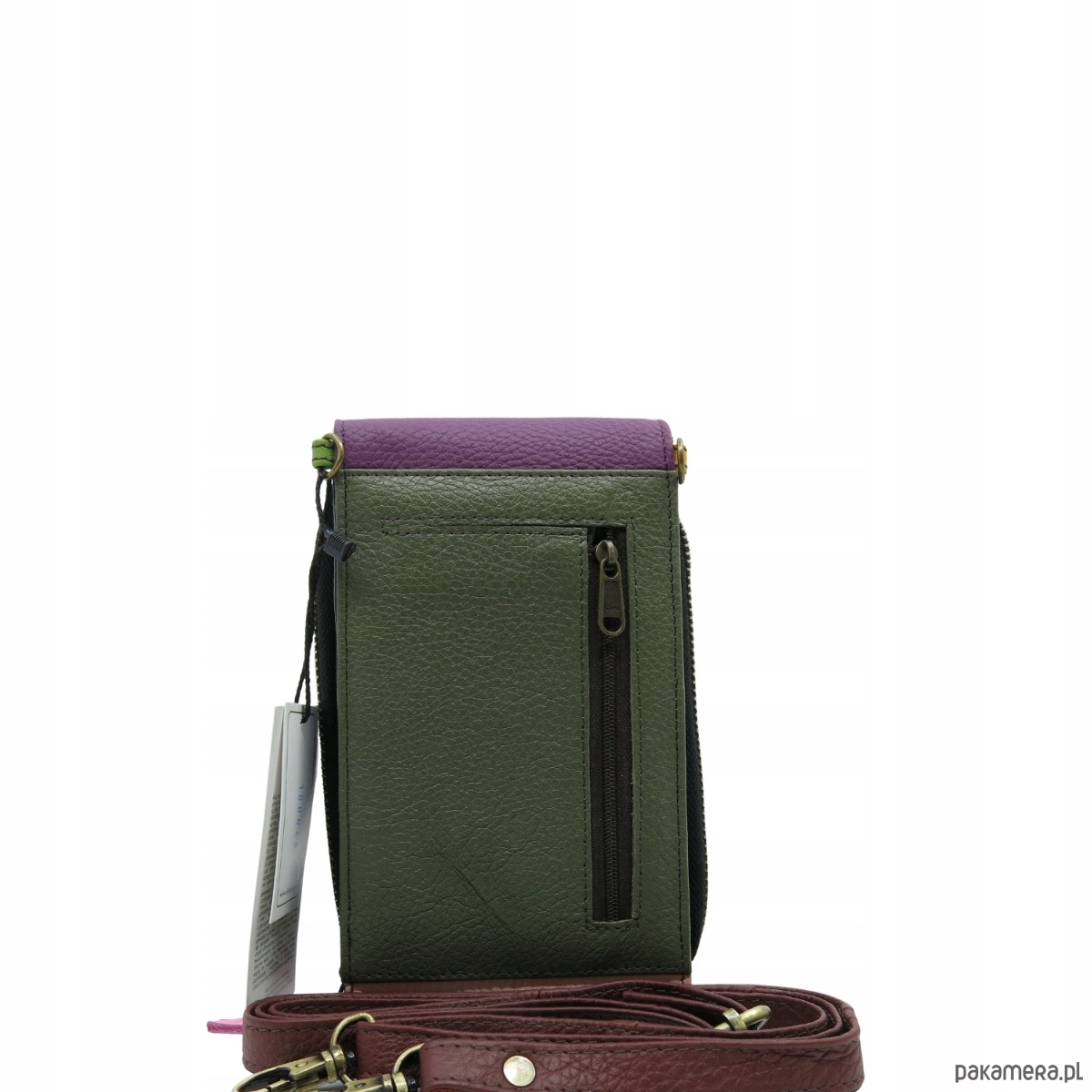 Torebka damska na telefon listonoszka skórzana regulowany pasek OLIVKA
