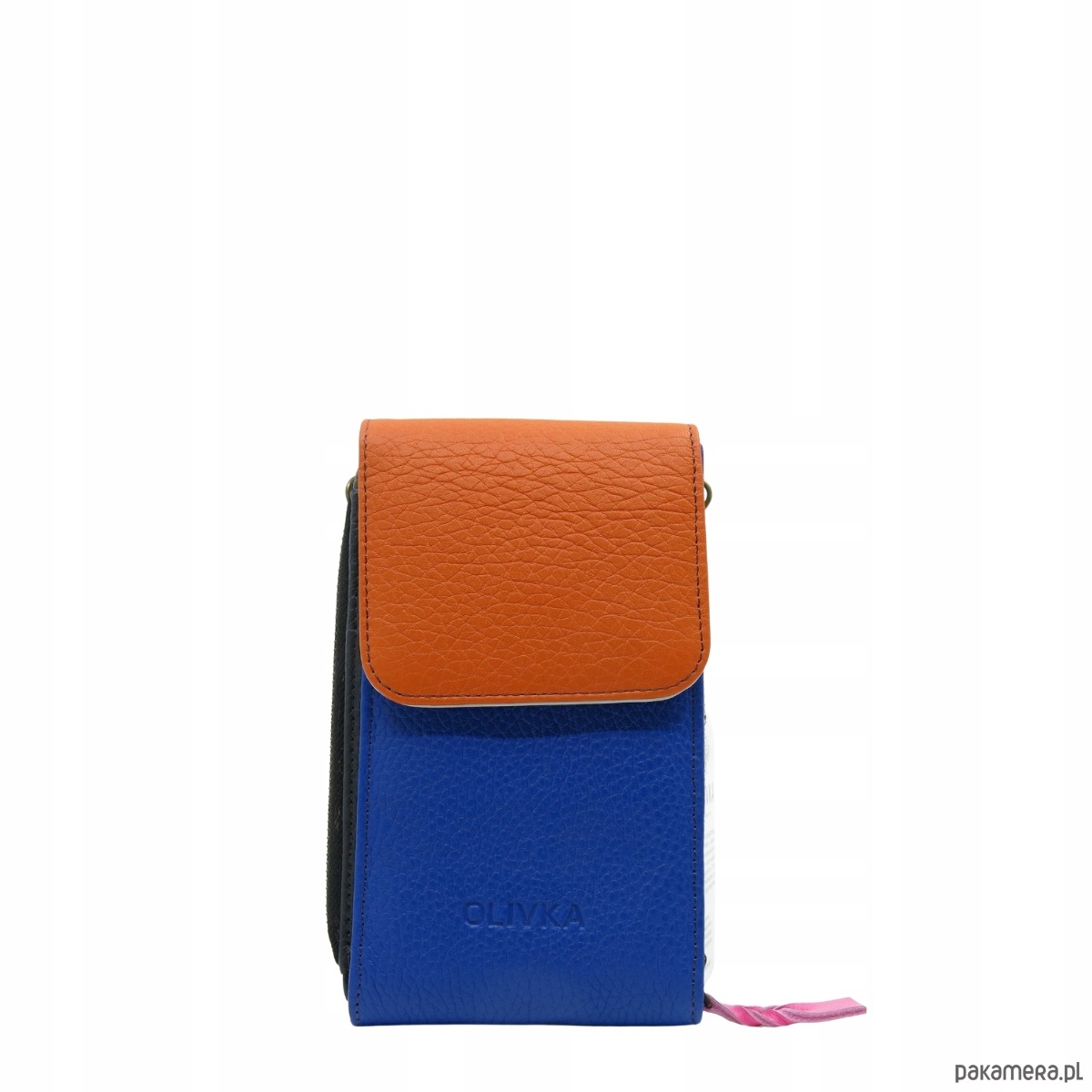 Torebka damska na telefon listonoszka skórzana regulowany pasek OLIVKA