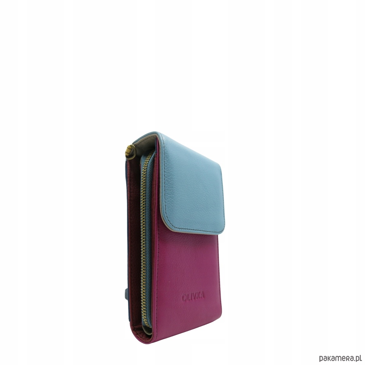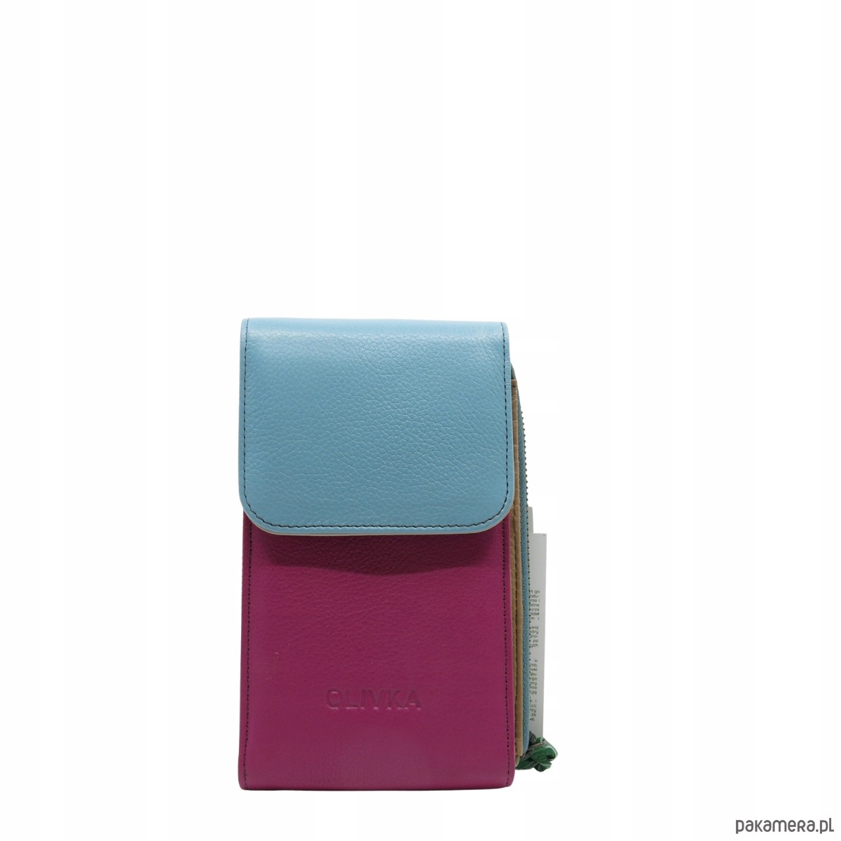 Torebka damska na telefon listonoszka skórzana regulowany pasek OLIVKA