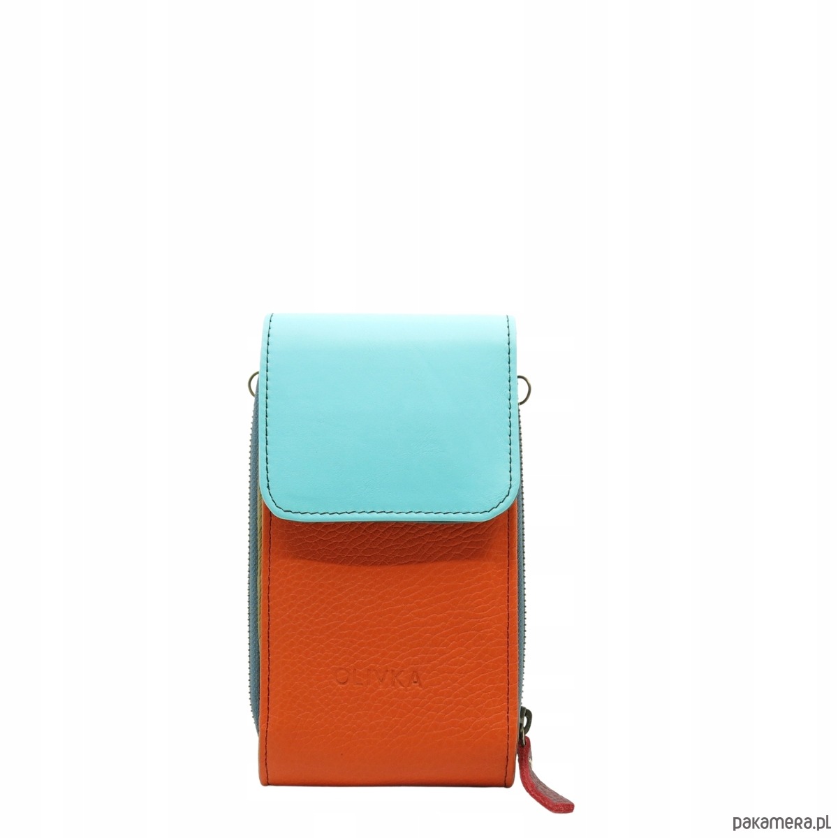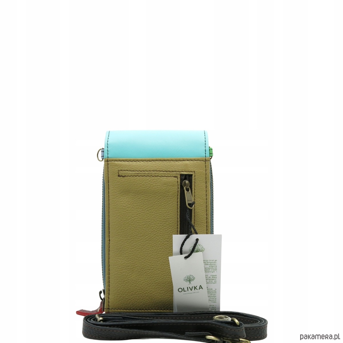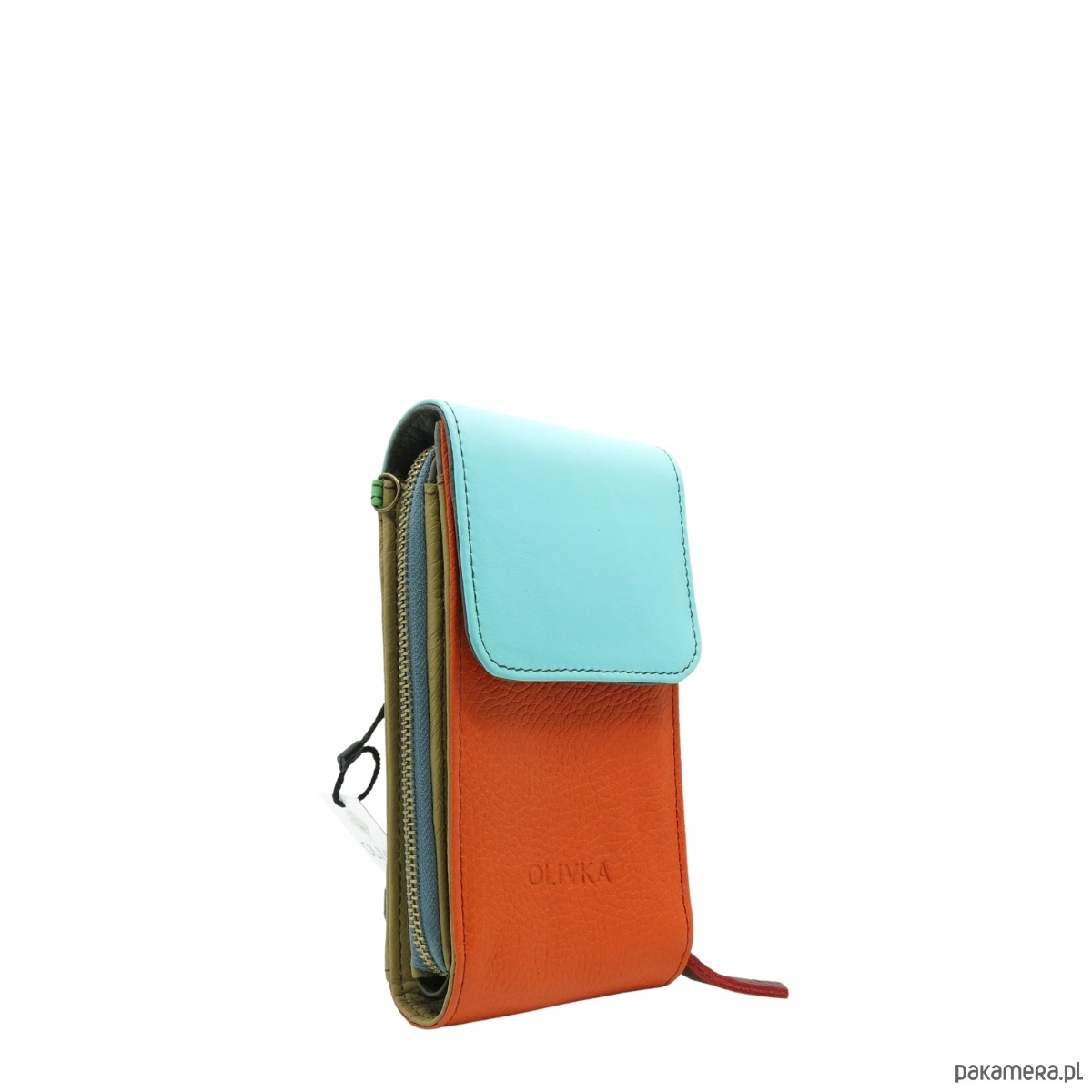 Torebka damska na telefon listonoszka skórzana regulowany pasek OLIVKA