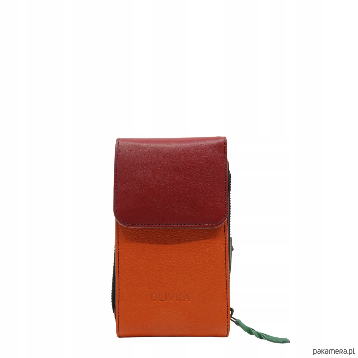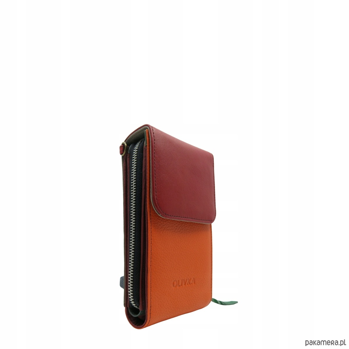 Torebka damska na telefon listonoszka skórzana regulowany pasek OLIVKA