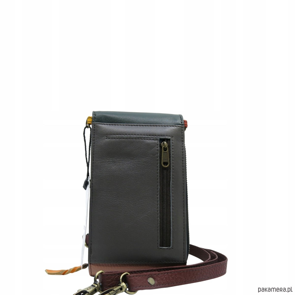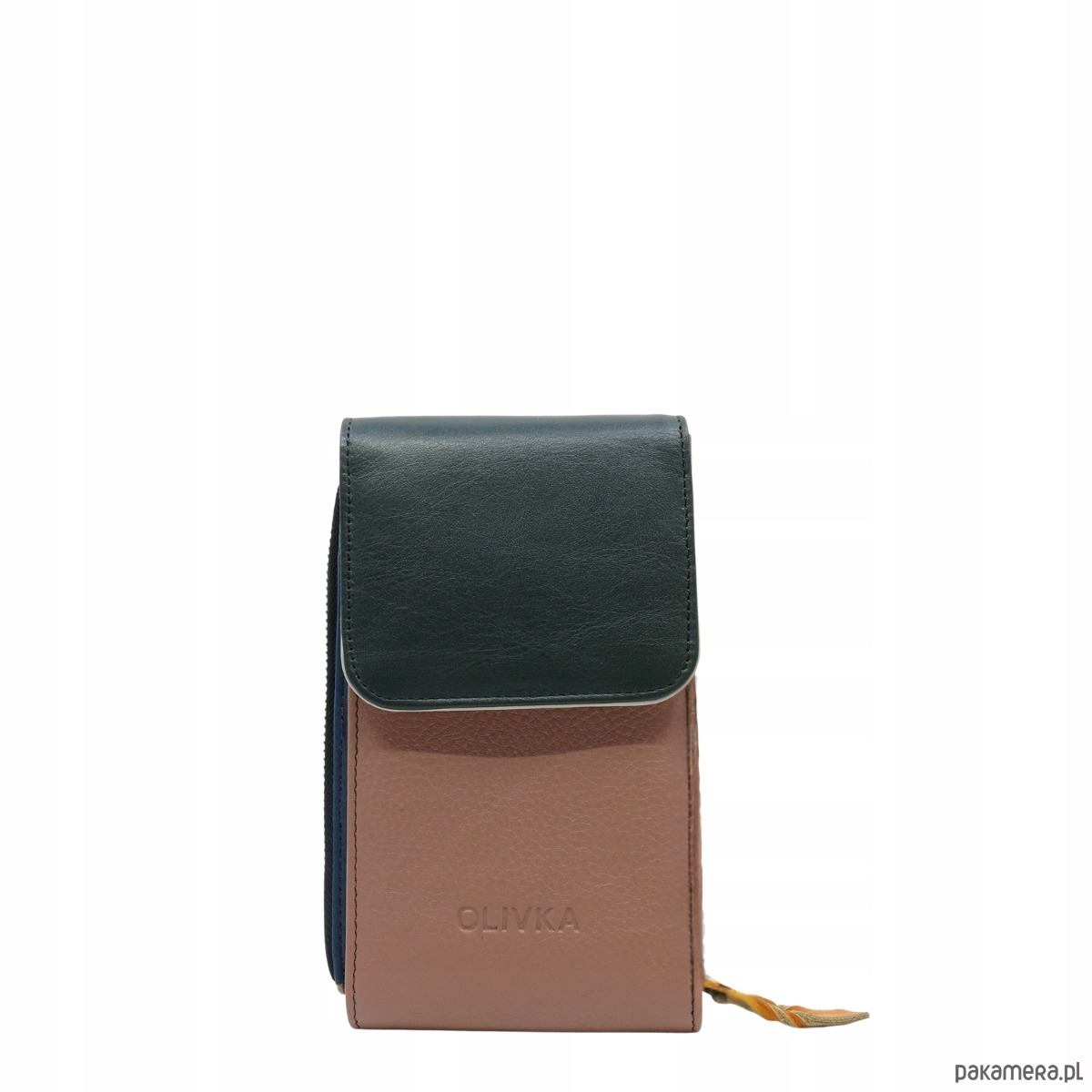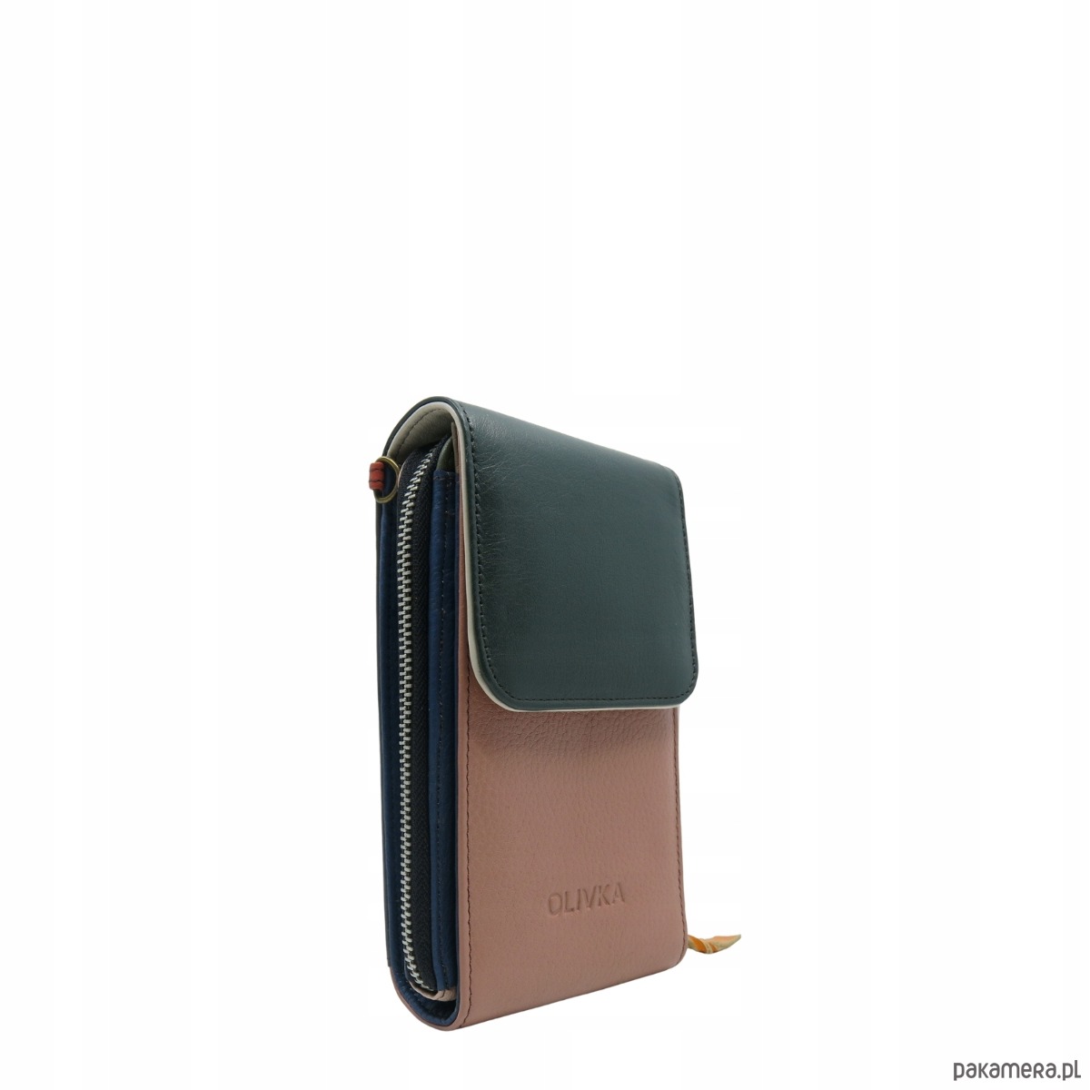Torebka damska na telefon listonoszka skórzana regulowany pasek OLIVKA