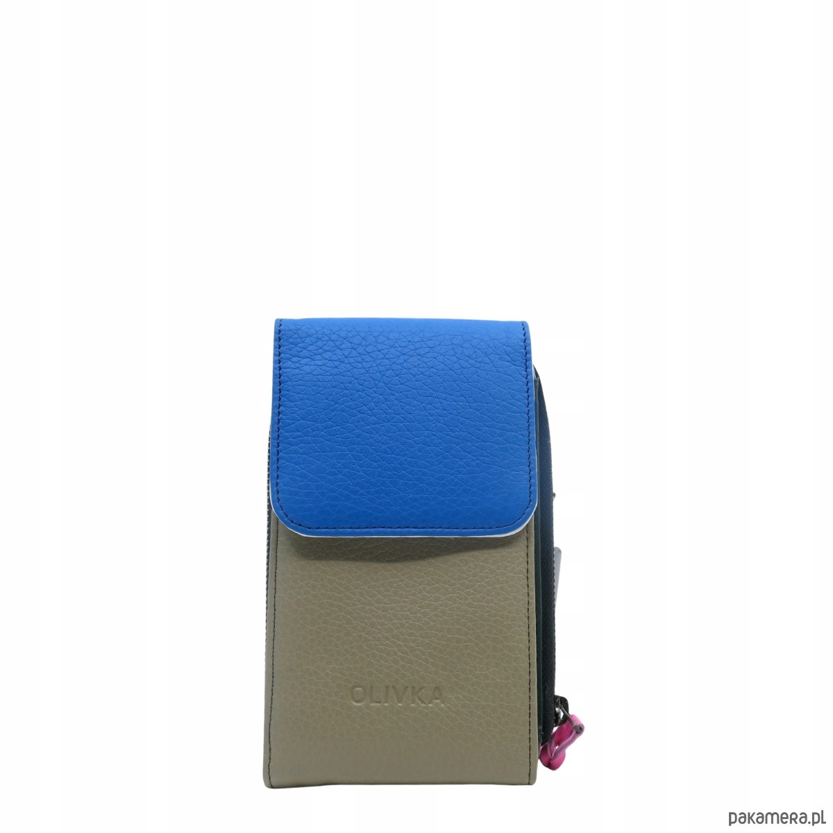 Torebka damska na telefon listonoszka skórzana regulowany pasek OLIVKA