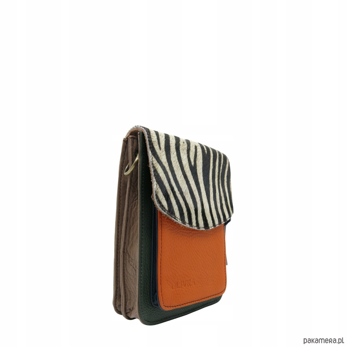 Torebka damska na telefon listonoszka skórzana skóra naturalna eko OLIVKA
