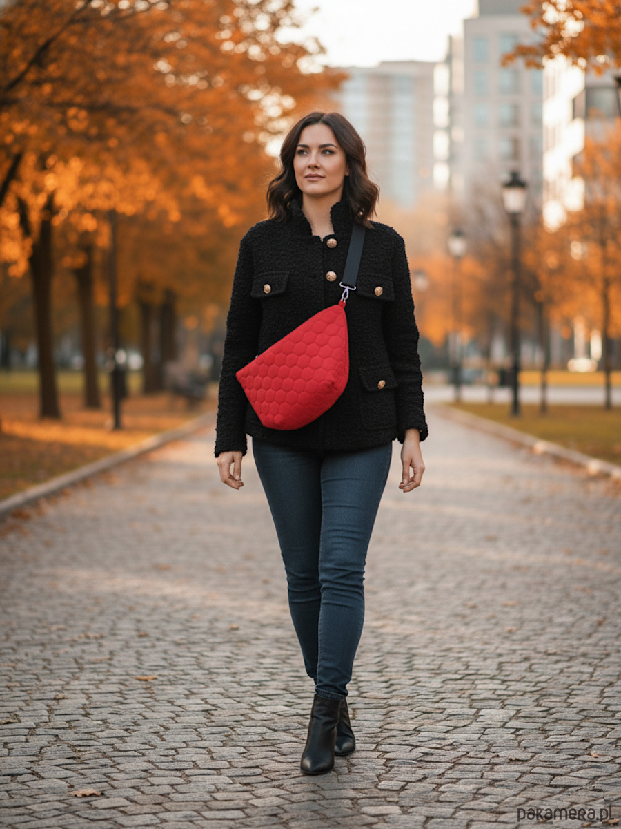 Unikalny design: Czerwony odcień i pikowana struktura sprawiają, że wyróżnisz się z tłumu, dodając swojej stylizacji szczypty wyrafinowania.