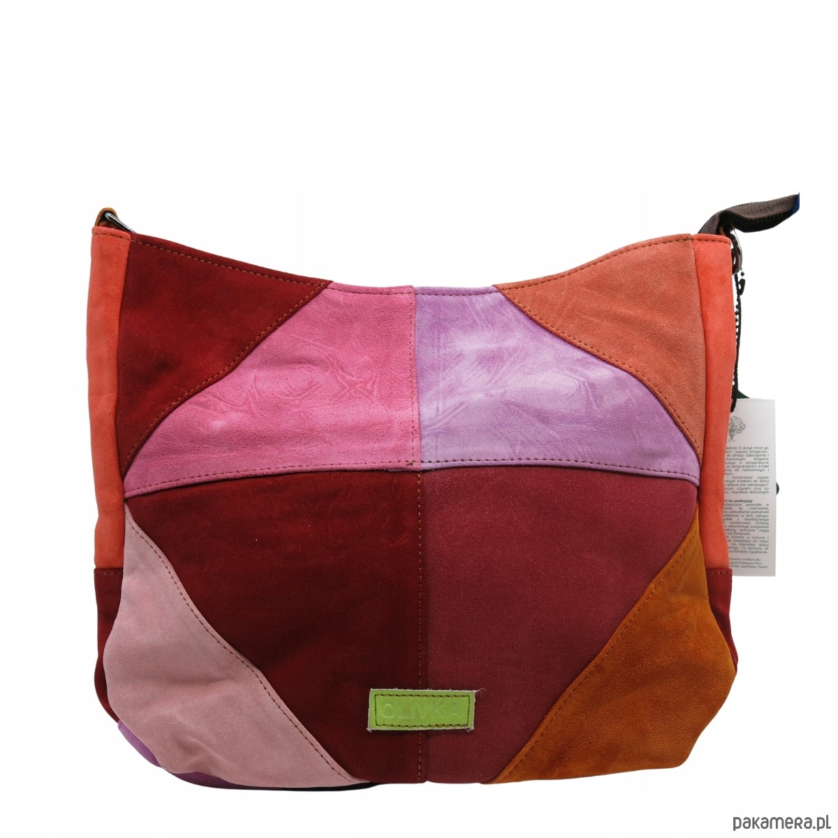 Torebka damska pojemna zamszowa na ramię kolorowa oryginalna OLIVKA