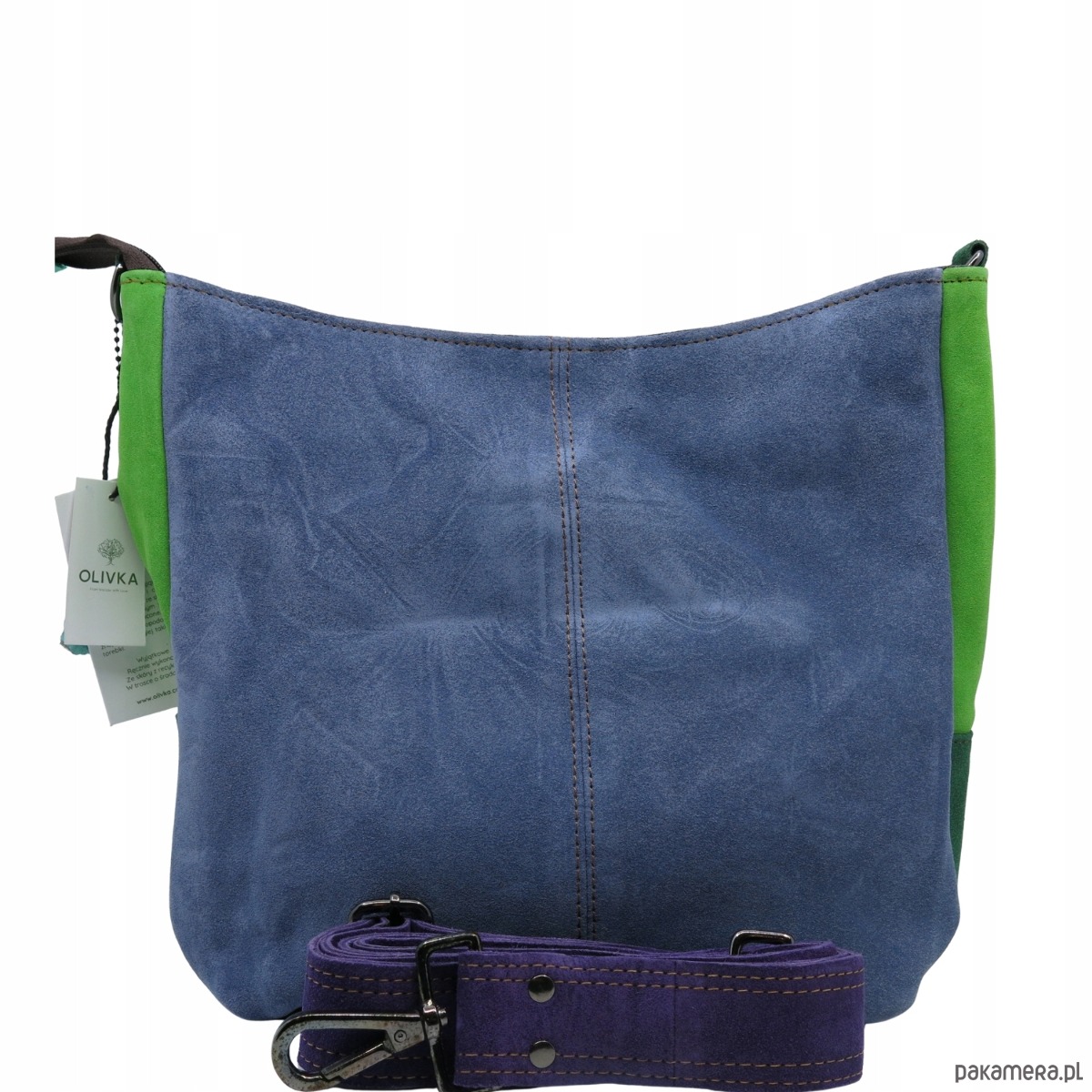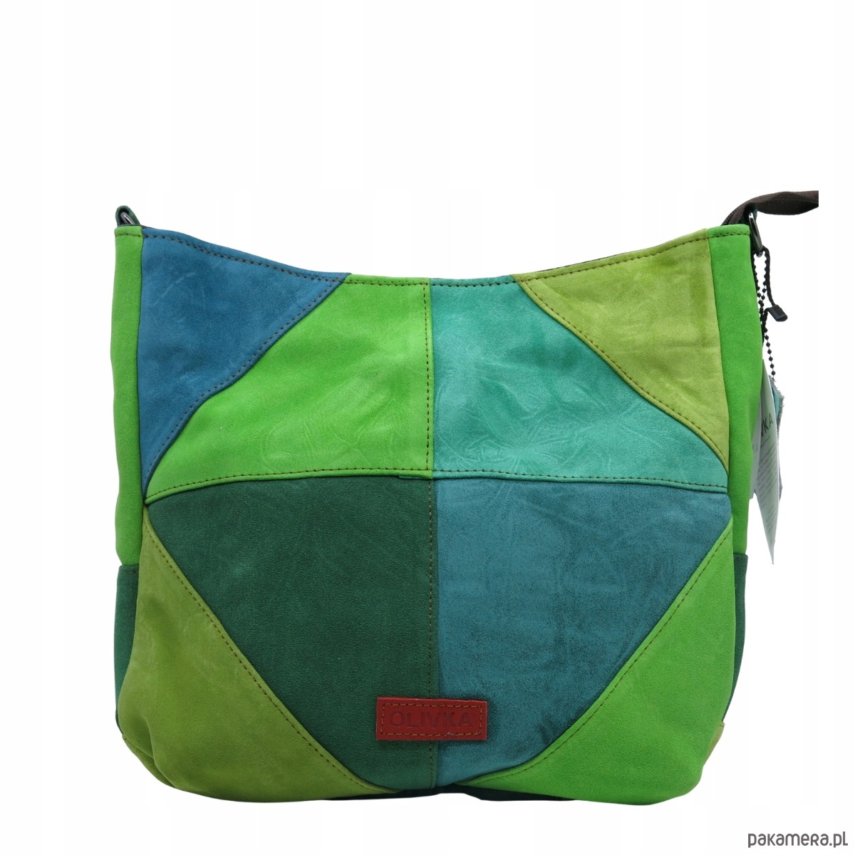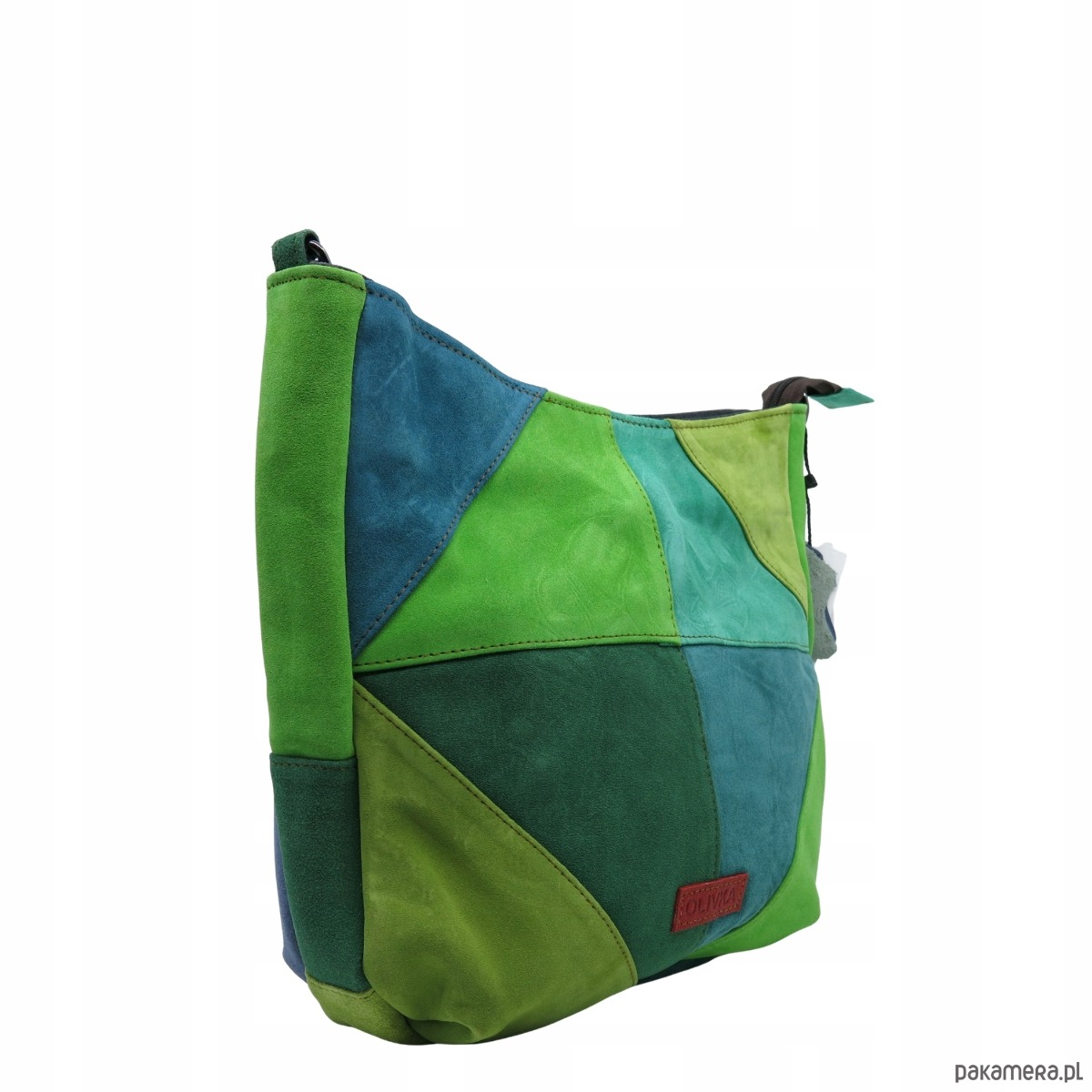 Torebka damska pojemna zamszowa na ramię kolorowa oryginalna OLIVKA