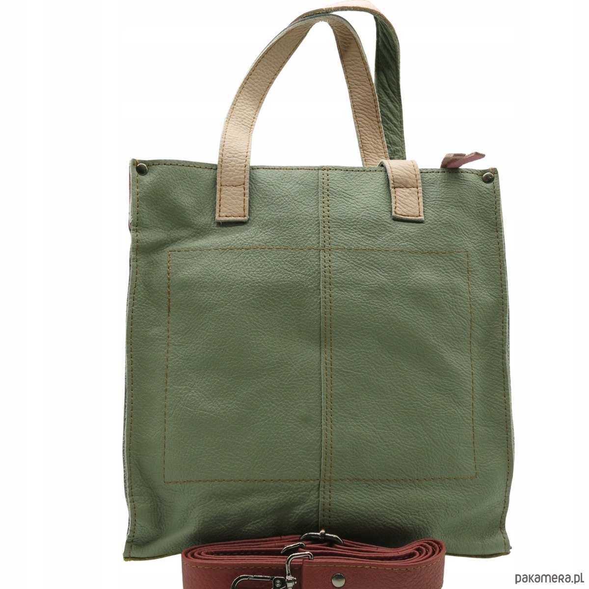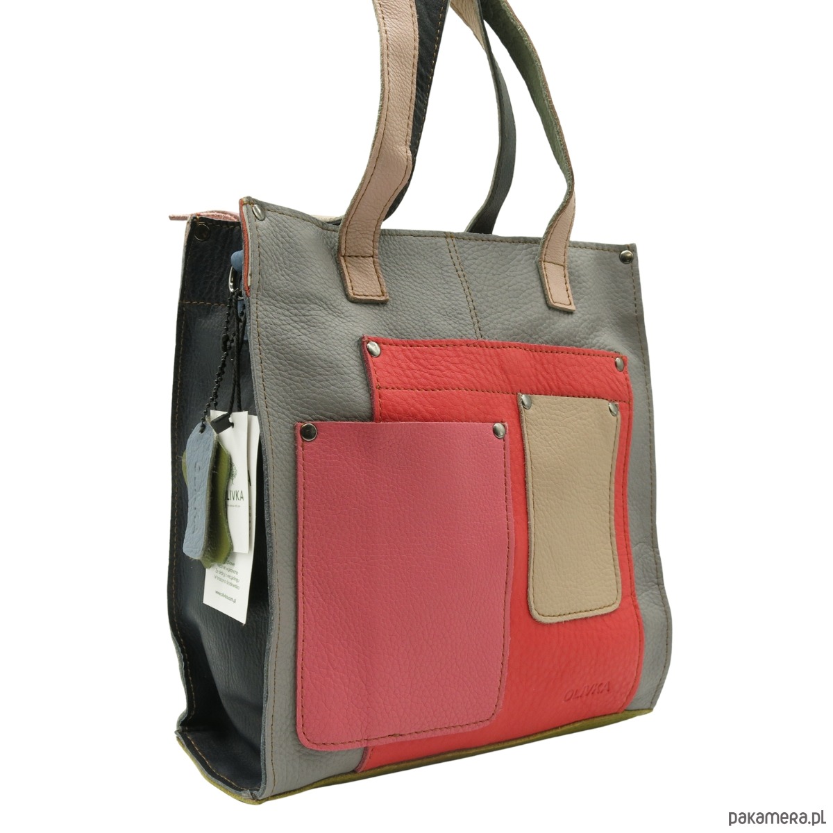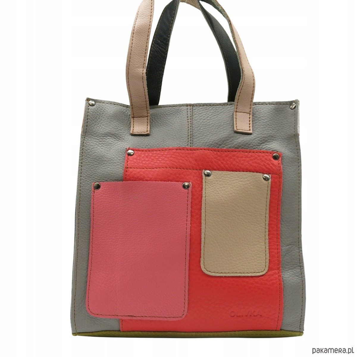 Torebka damska shopper, pojemna, skórzana ze skrawków kolorowa OLIVKA