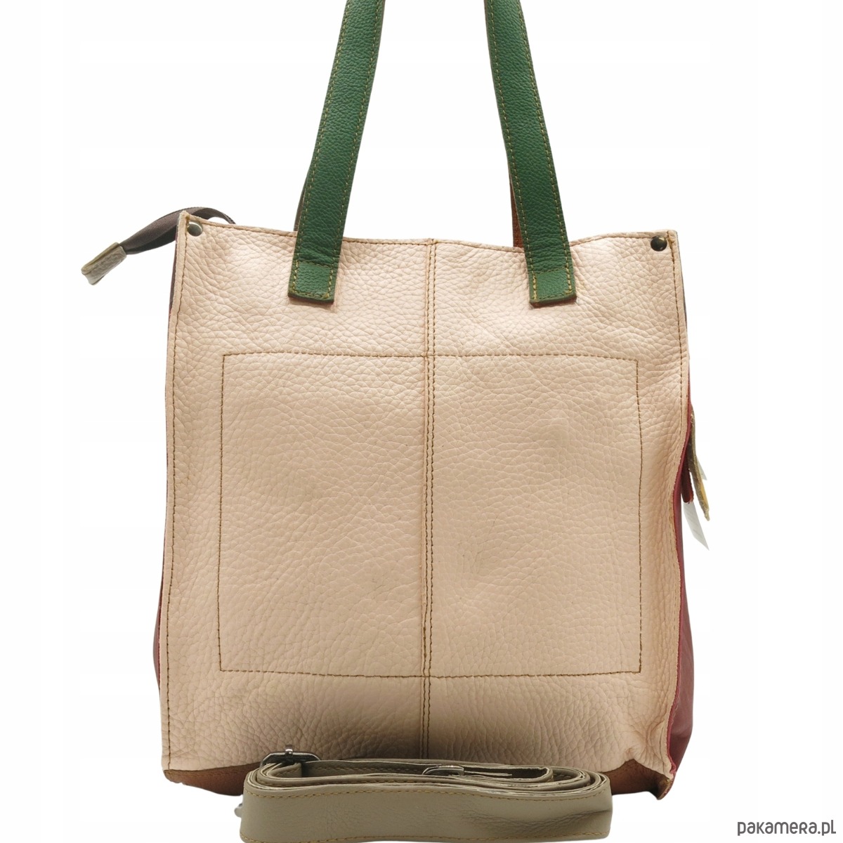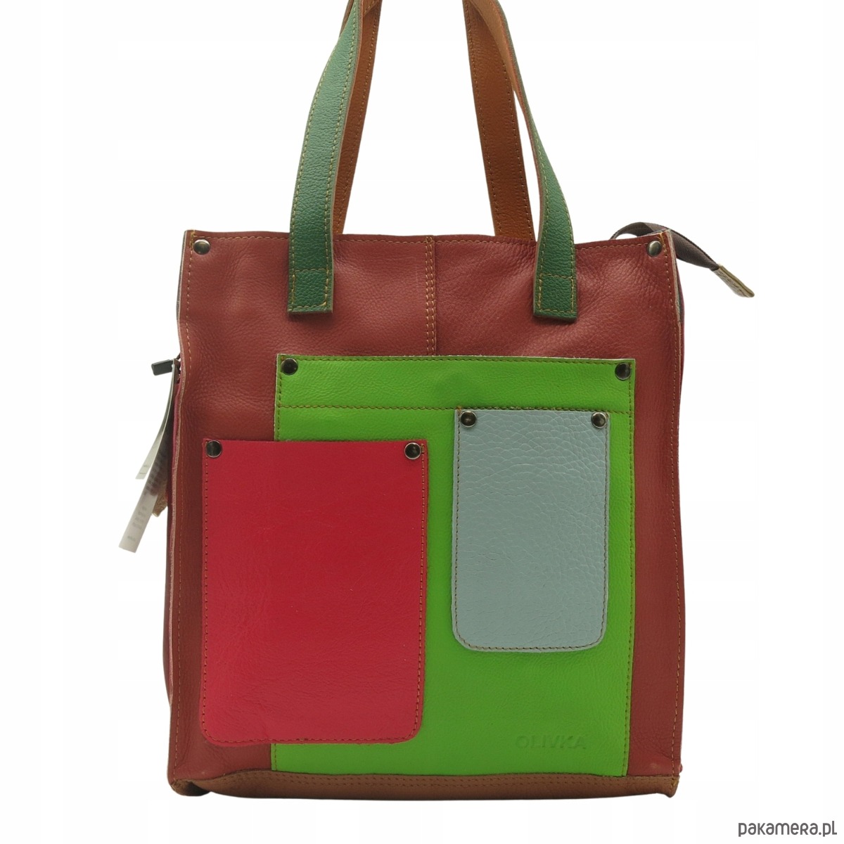 Torebka damska shopper, pojemna, skórzana ze skrawków kolorowa OLIVKA