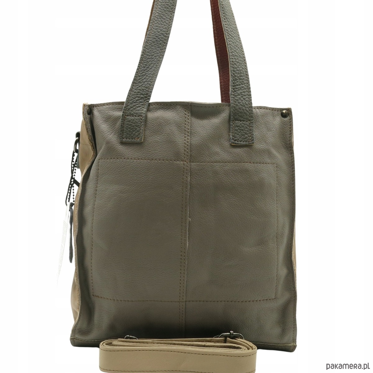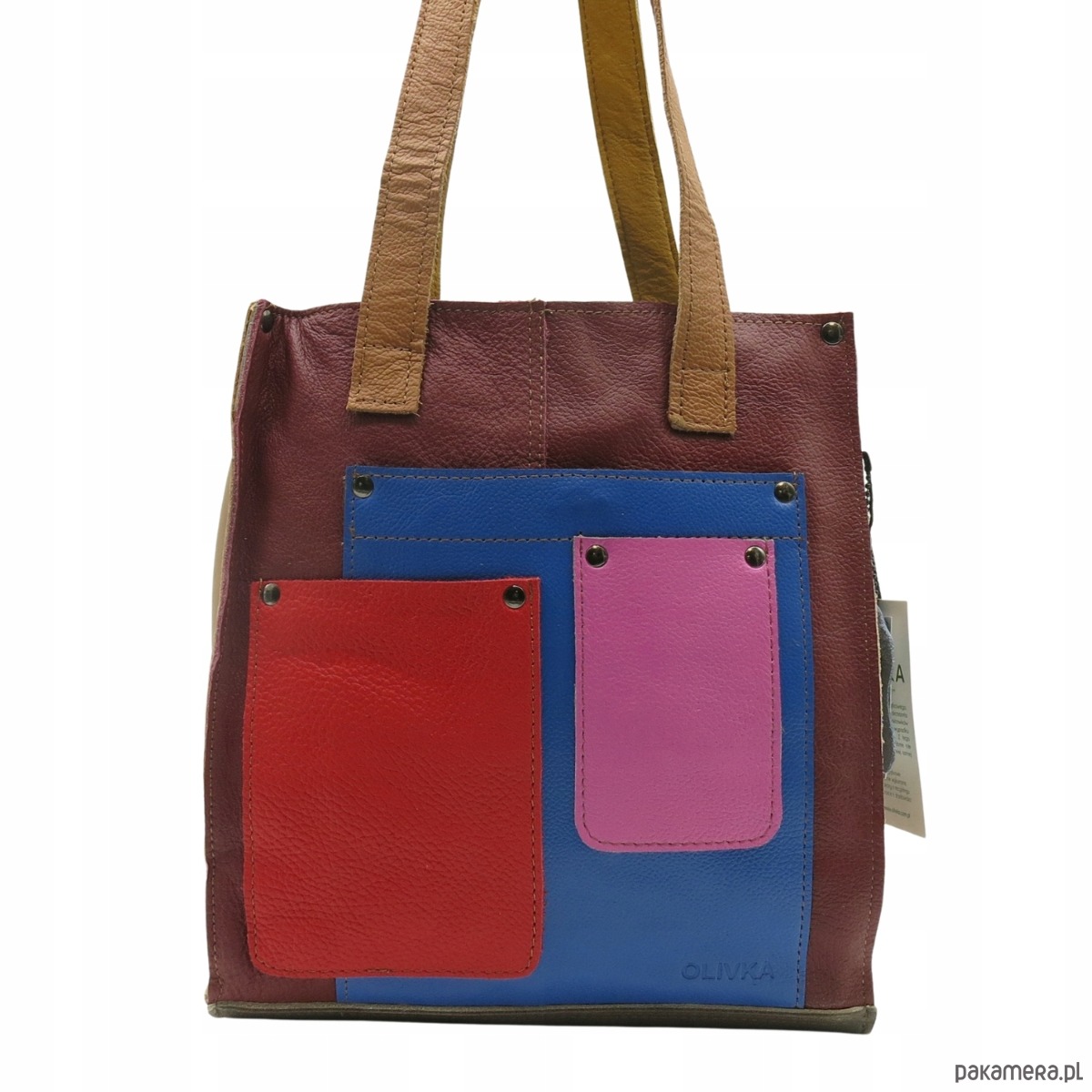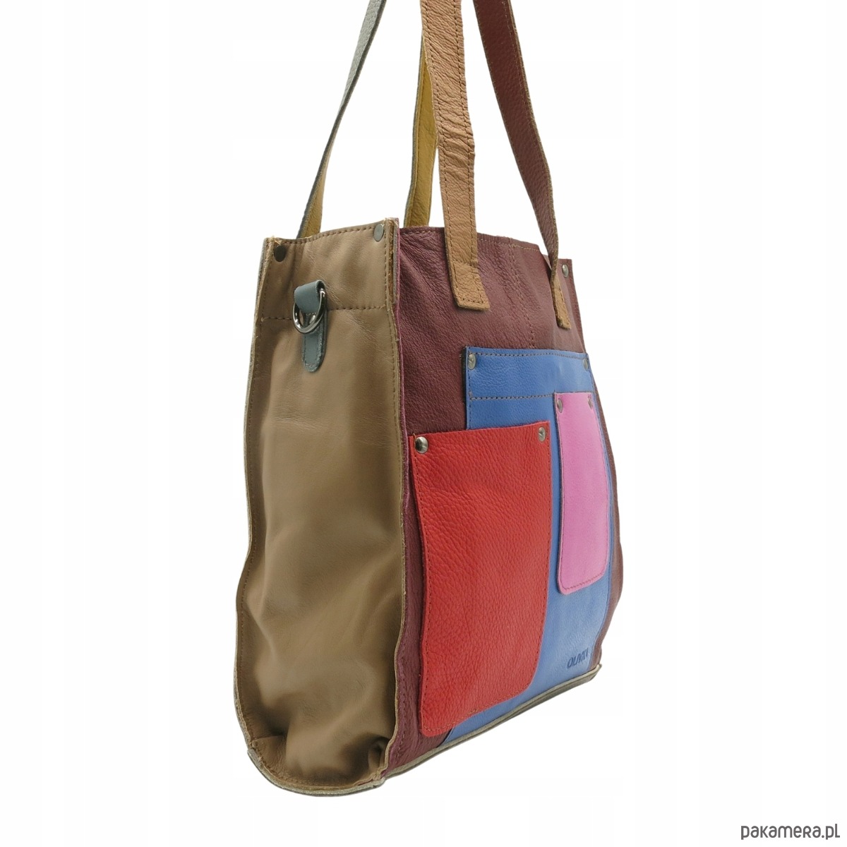 Torebka damska shopper, pojemna, skórzana ze skrawków kolorowa OLIVKA