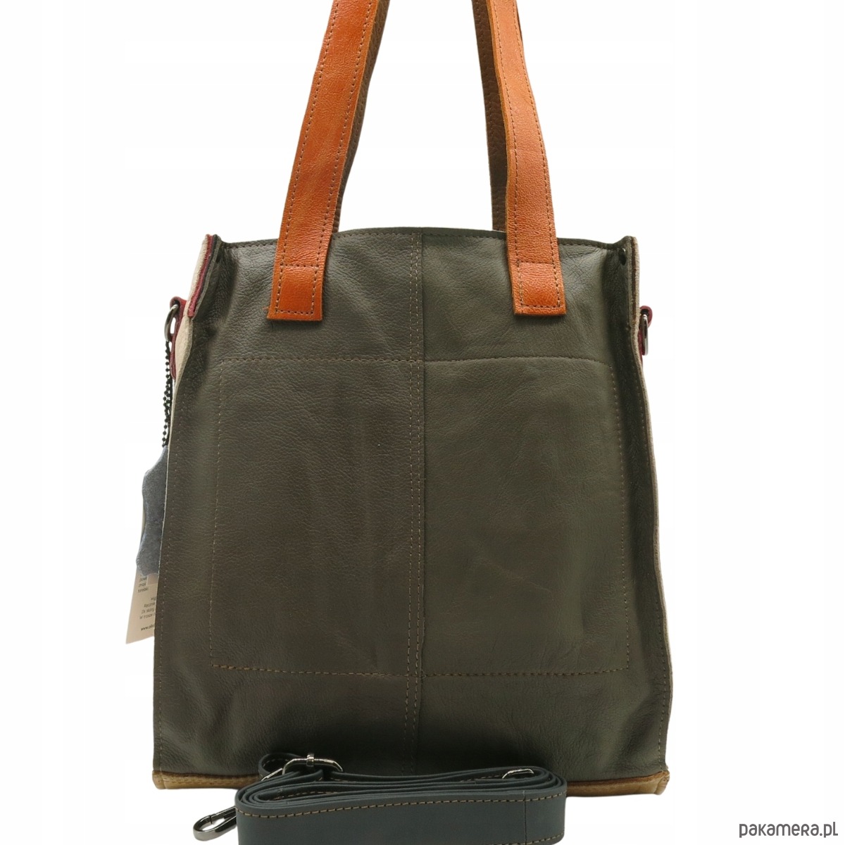 Torebka damska shopper, pojemna, skórzana ze skrawków kolorowa OLIVKA