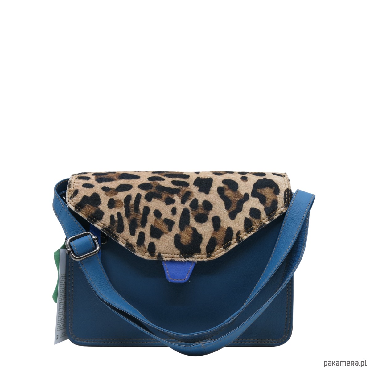 jedna strona klapki ze skóry licowej, druga ze skóry z naturalnym włosiem z nadrukiem