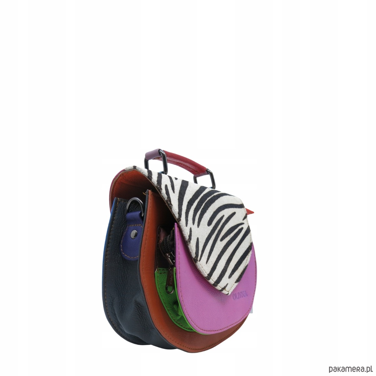 Dzięki odpinanej i obrotowej klapce w kilka sekund nadasz torebce zupełnie nowy charakter. Obrócenie klapki pozwala uzyskać cztery różne warianty kolorystyczne. Jedna strona klapki została wykonana ze skóry licowej, natomiast druga ze skóry z naturalnym włosiem z nadrukiem, co dodatkowo podkreśla jej unikatowy wygląd.