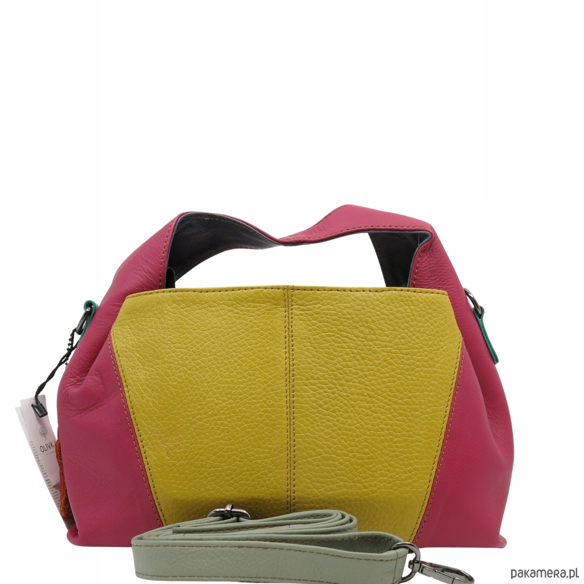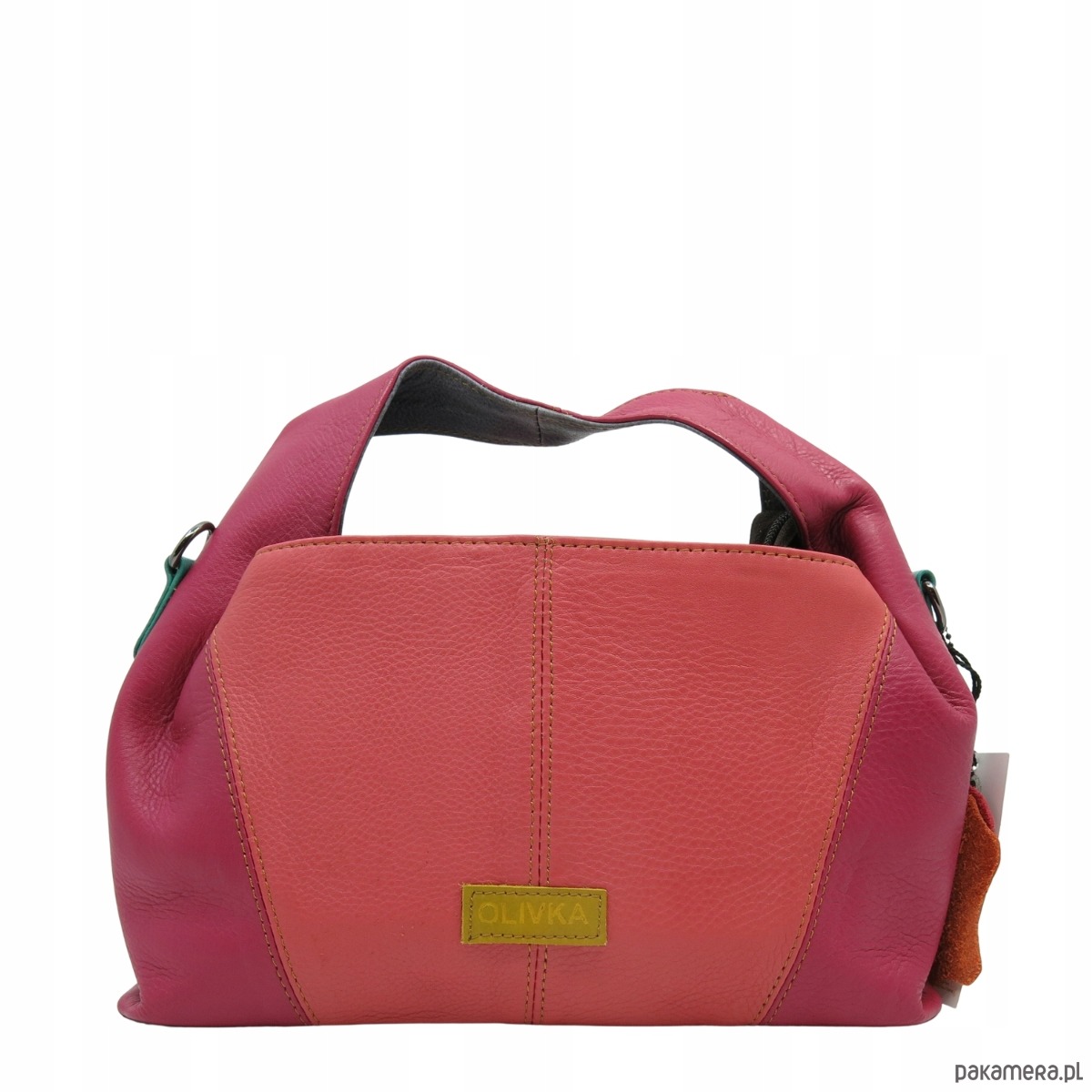 Torebka damska skórzana do ręki ze skrawków skór elegancka kolorowa OLIVKA