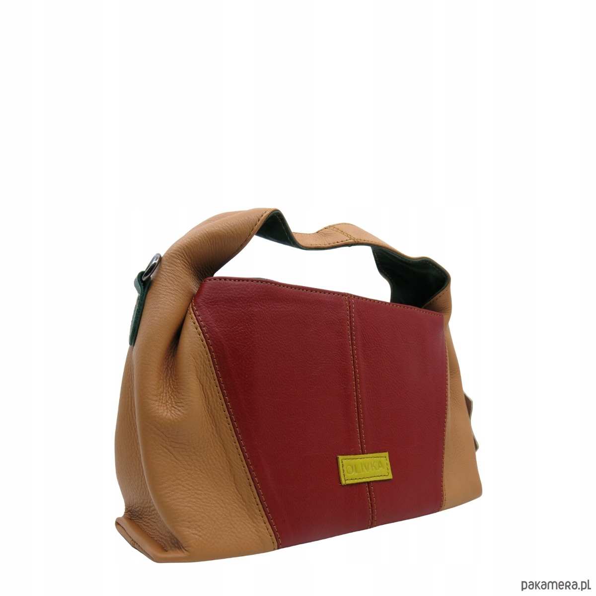 Torebka damska skórzana do ręki ze skrawków skór elegancka kolorowa OLIVKA