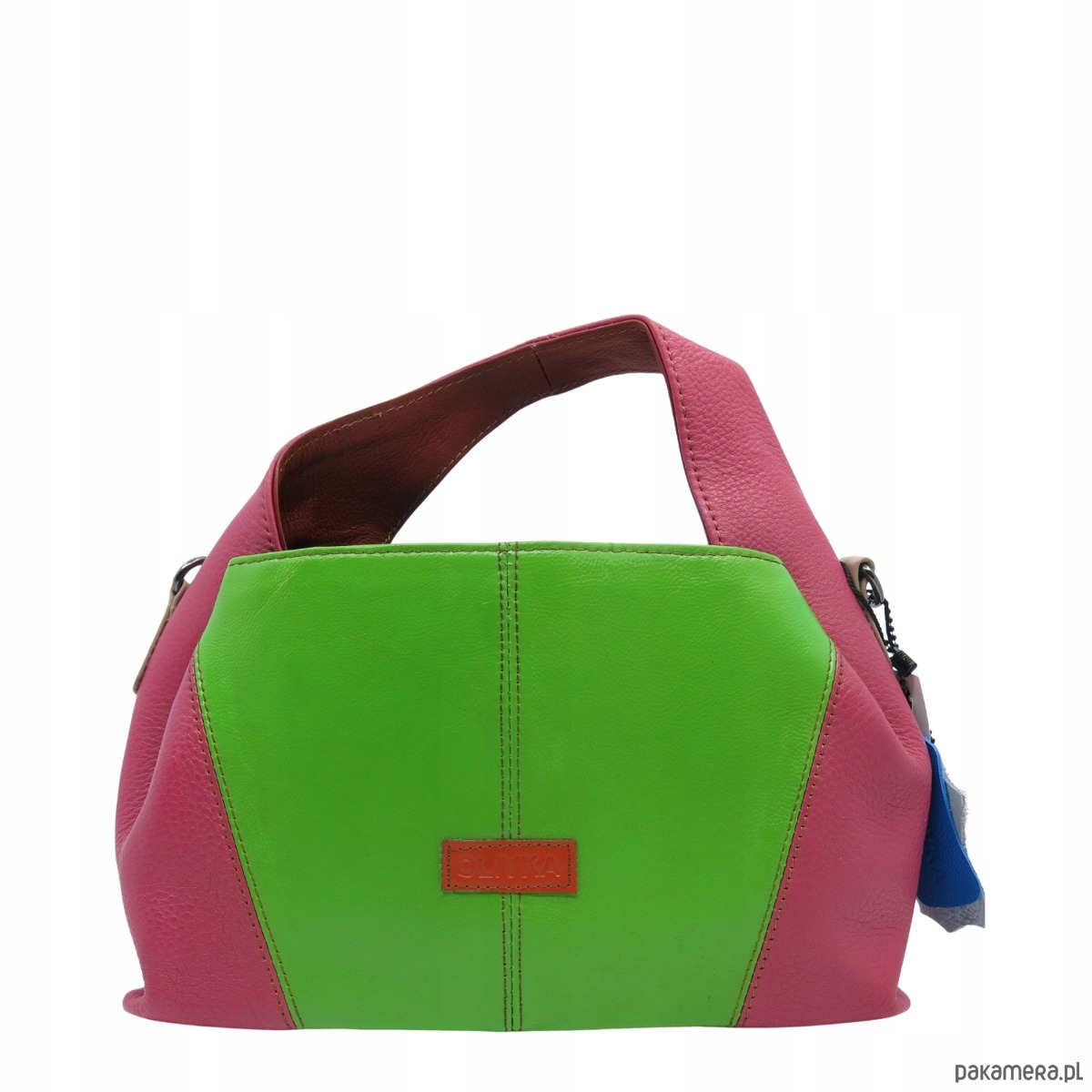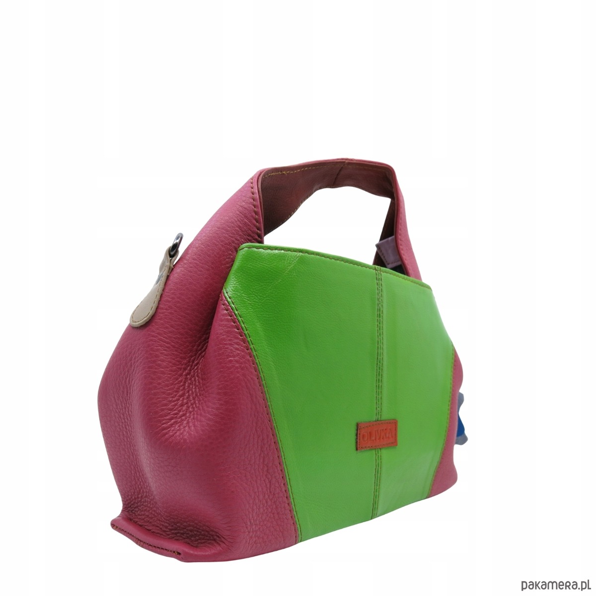 Torebka damska skórzana do ręki ze skrawków skór elegancka kolorowa OLIVKA