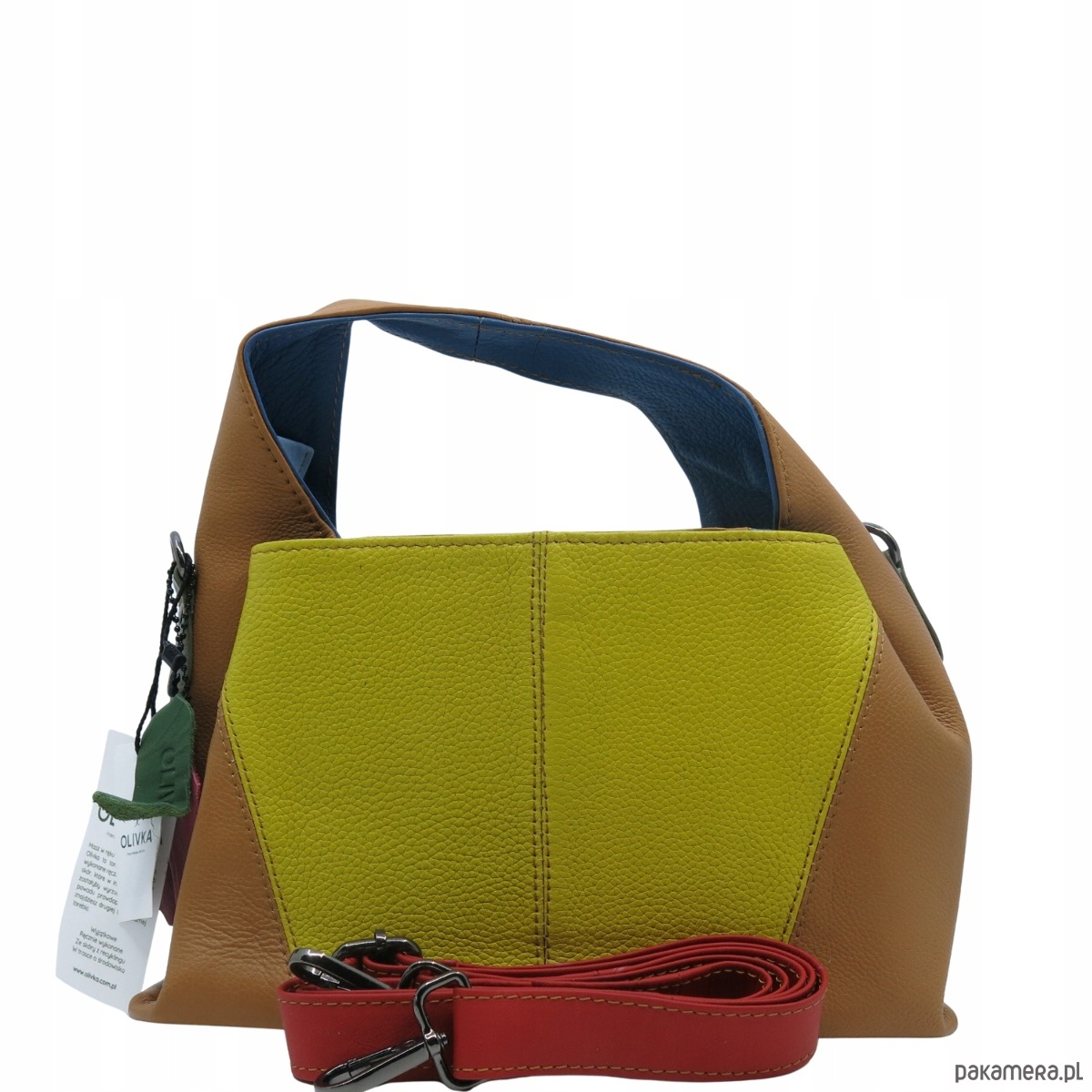 Torebka damska skórzana do ręki ze skrawków skór elegancka kolorowa OLIVKA