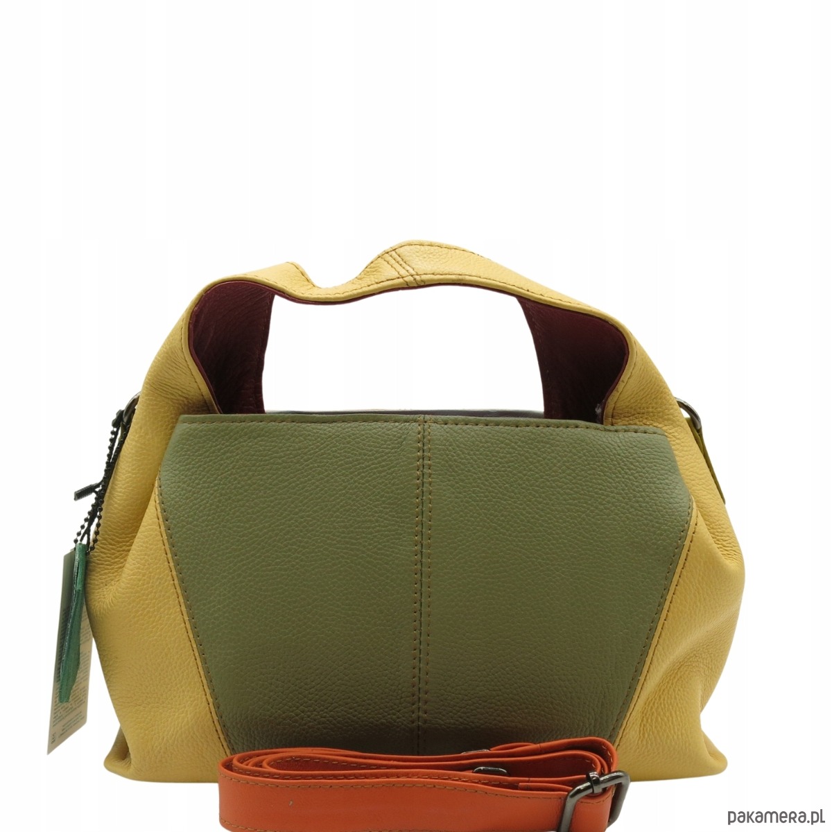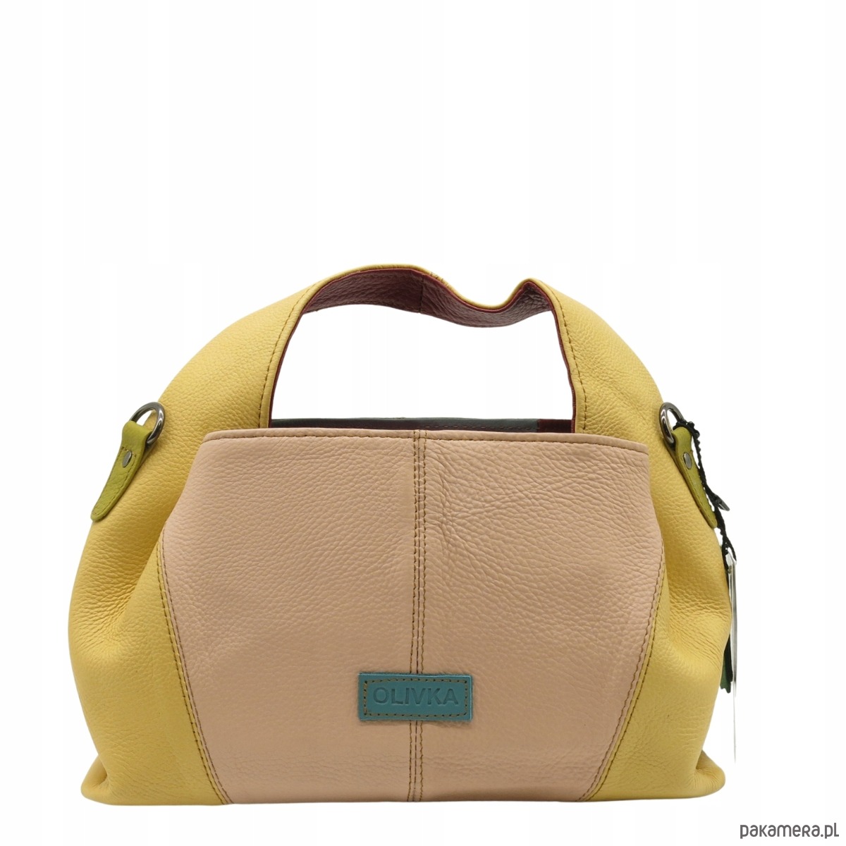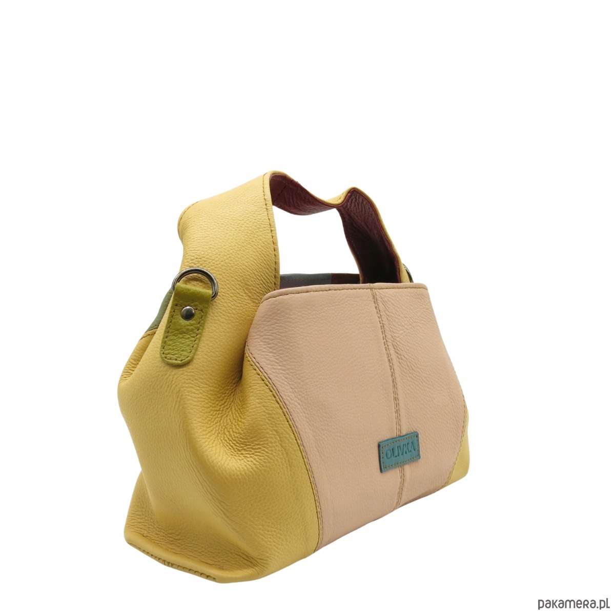 Torebka damska skórzana do ręki ze skrawków skór elegancka kolorowa OLIVKA