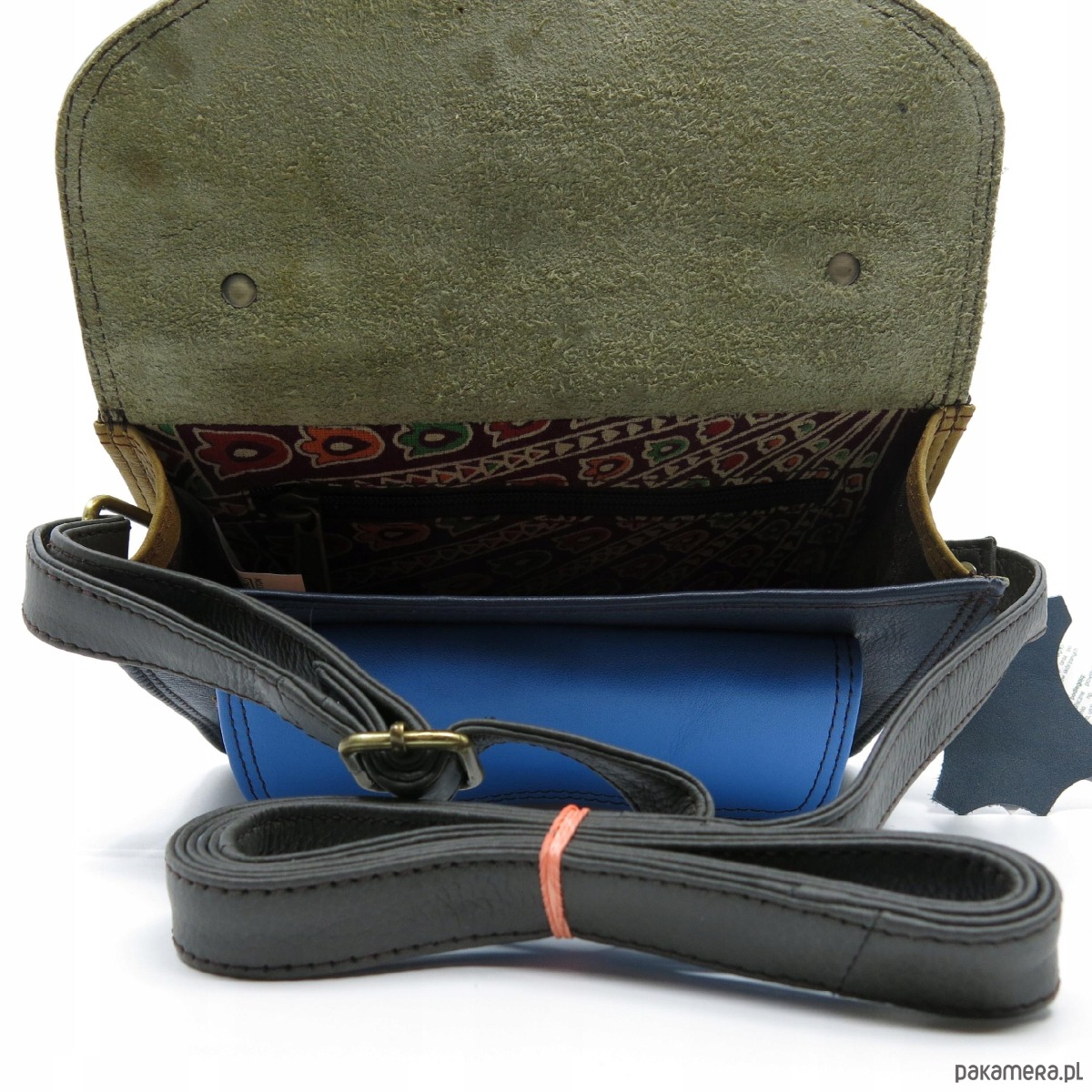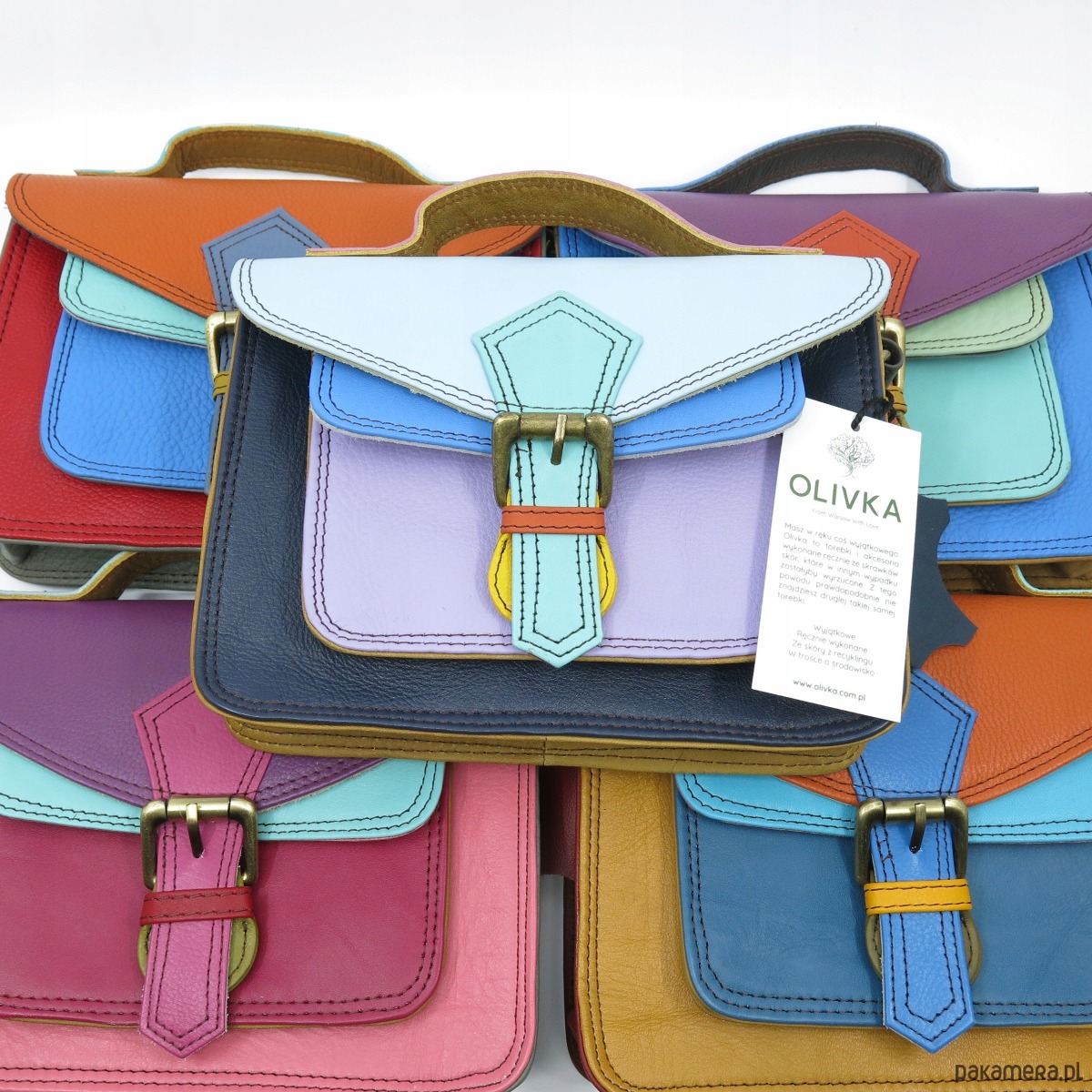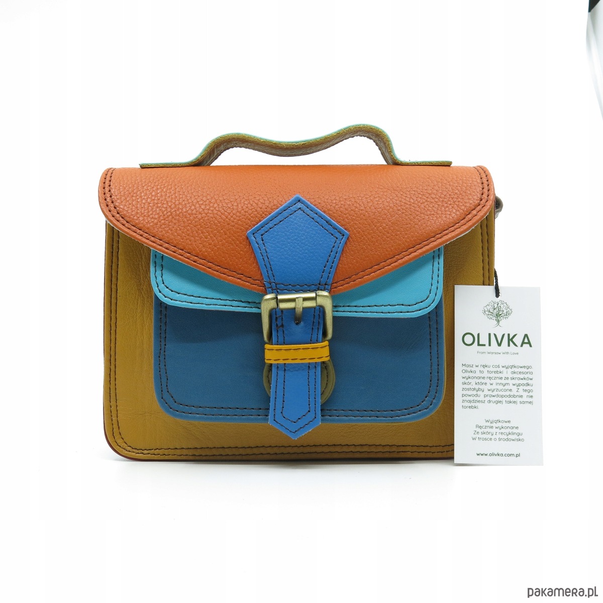 Torebka damska skórzana listonoszka kolorowa rączka regulowany pasek Olivka