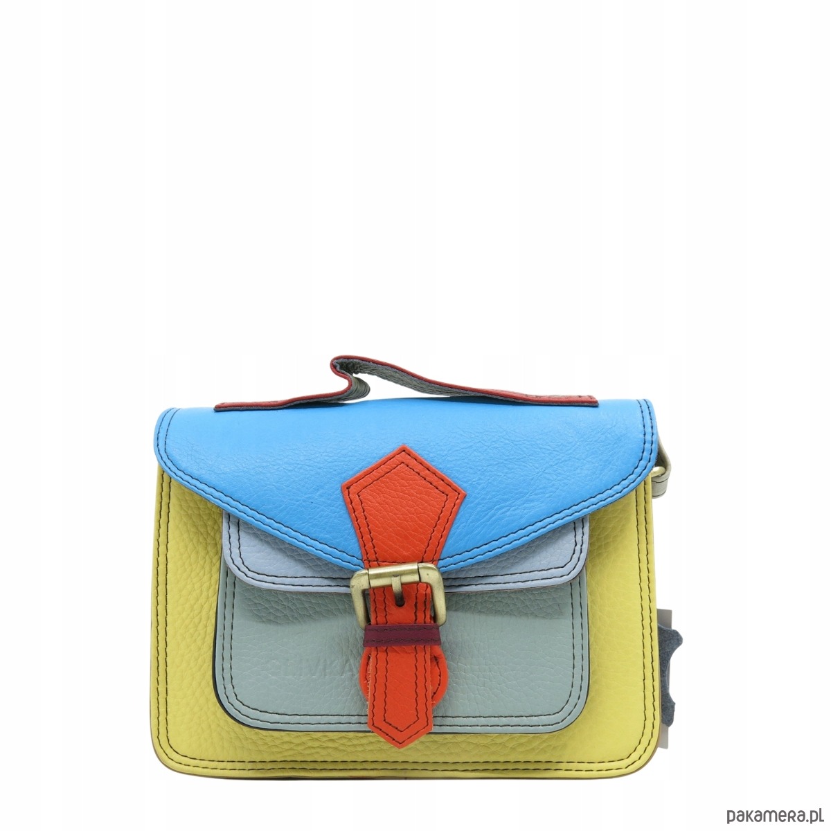 Torebka damska skórzana listonoszka kolorowa rączka regulowany pasek OLIVKA