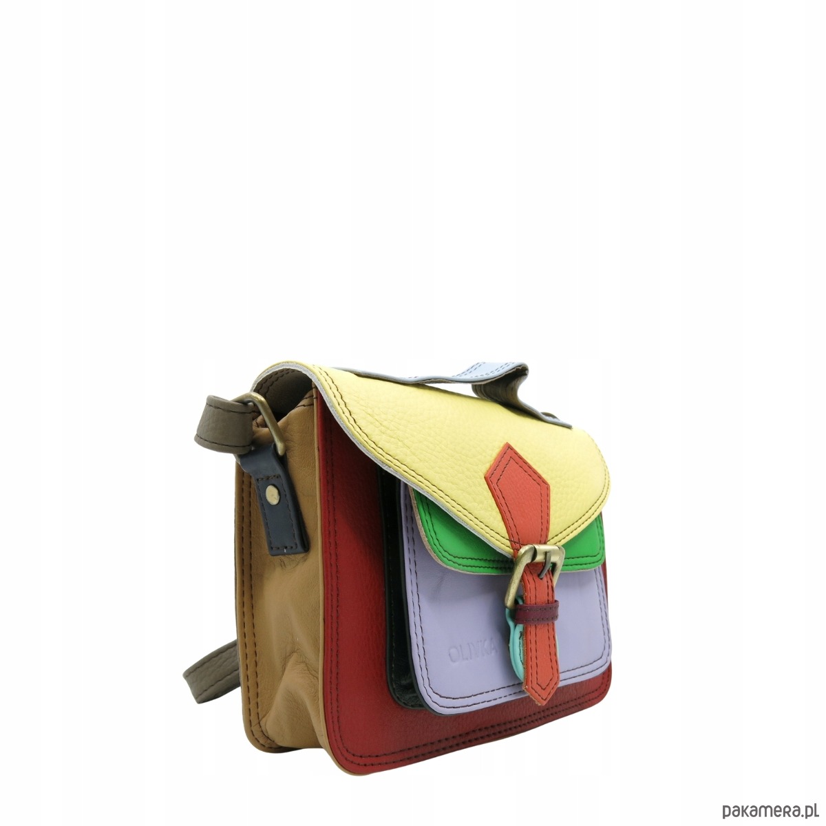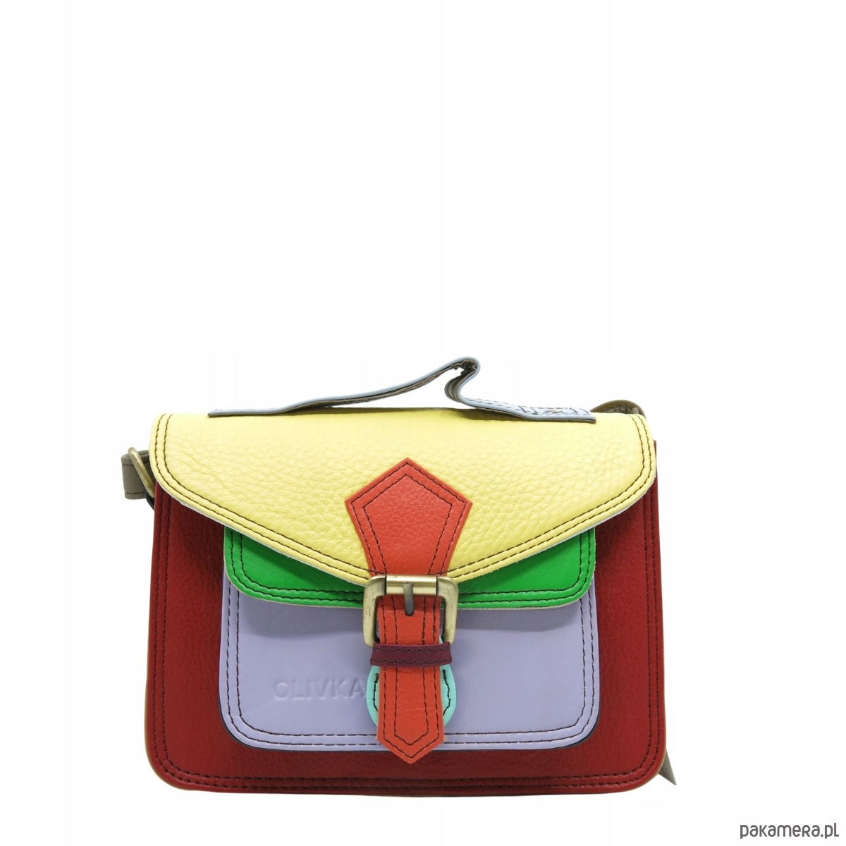 Torebka damska skórzana listonoszka kolorowa rączka regulowany pasek OLIVKA