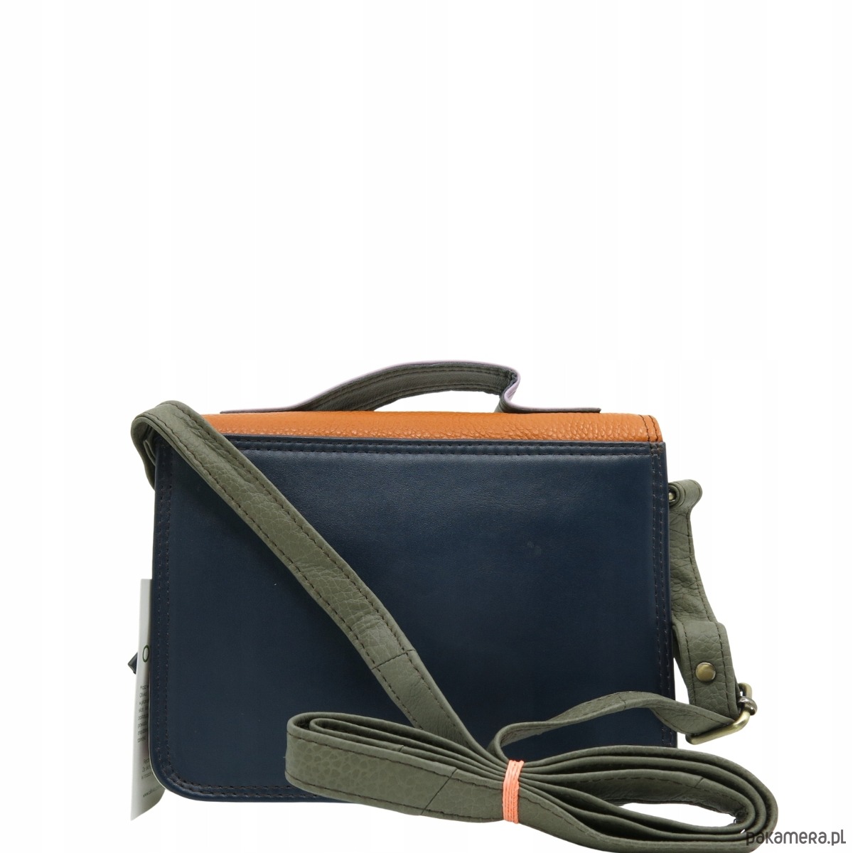 Torebka damska skórzana listonoszka kolorowa rączka regulowany pasek OLIVKA