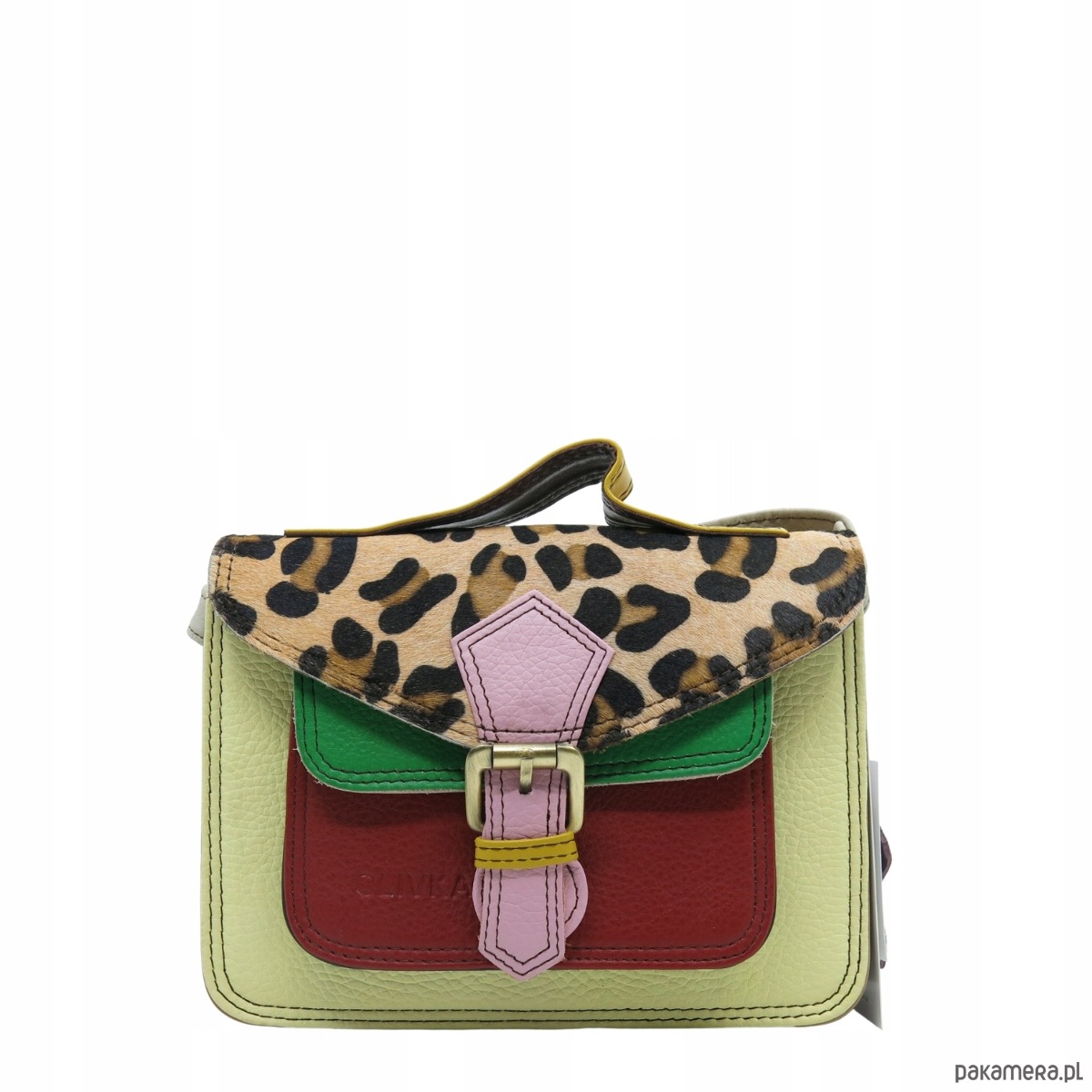 Torebka damska skórzana listonoszka kolorowa rączka regulowany pasek OLIVKA