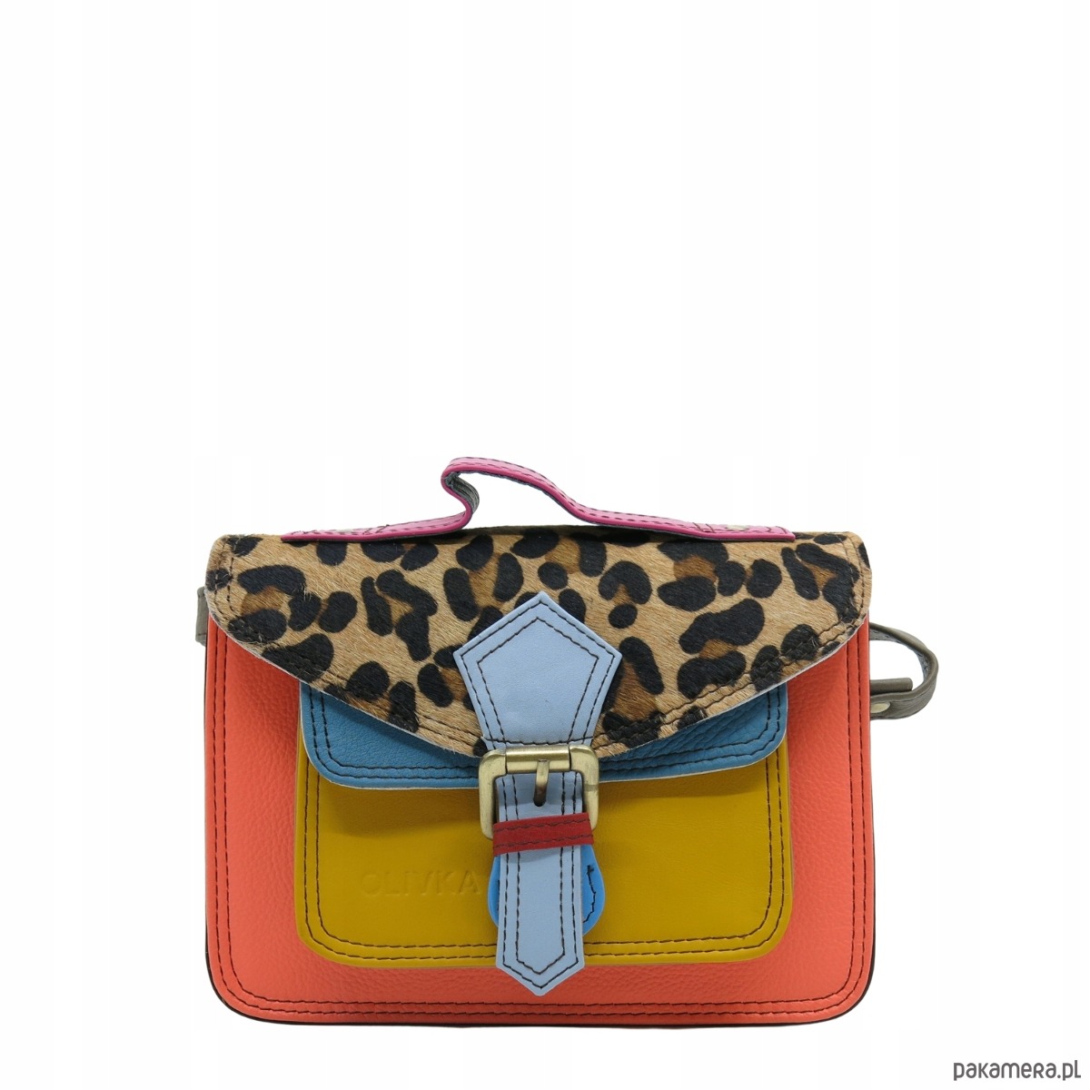 Torebka damska skórzana listonoszka kolorowa rączka regulowany pasek OLIVKA