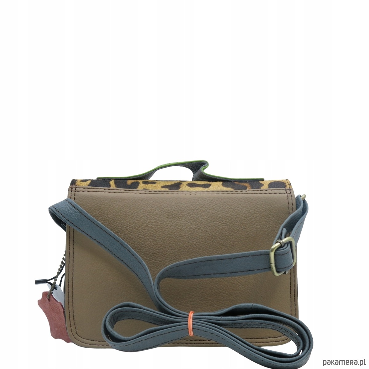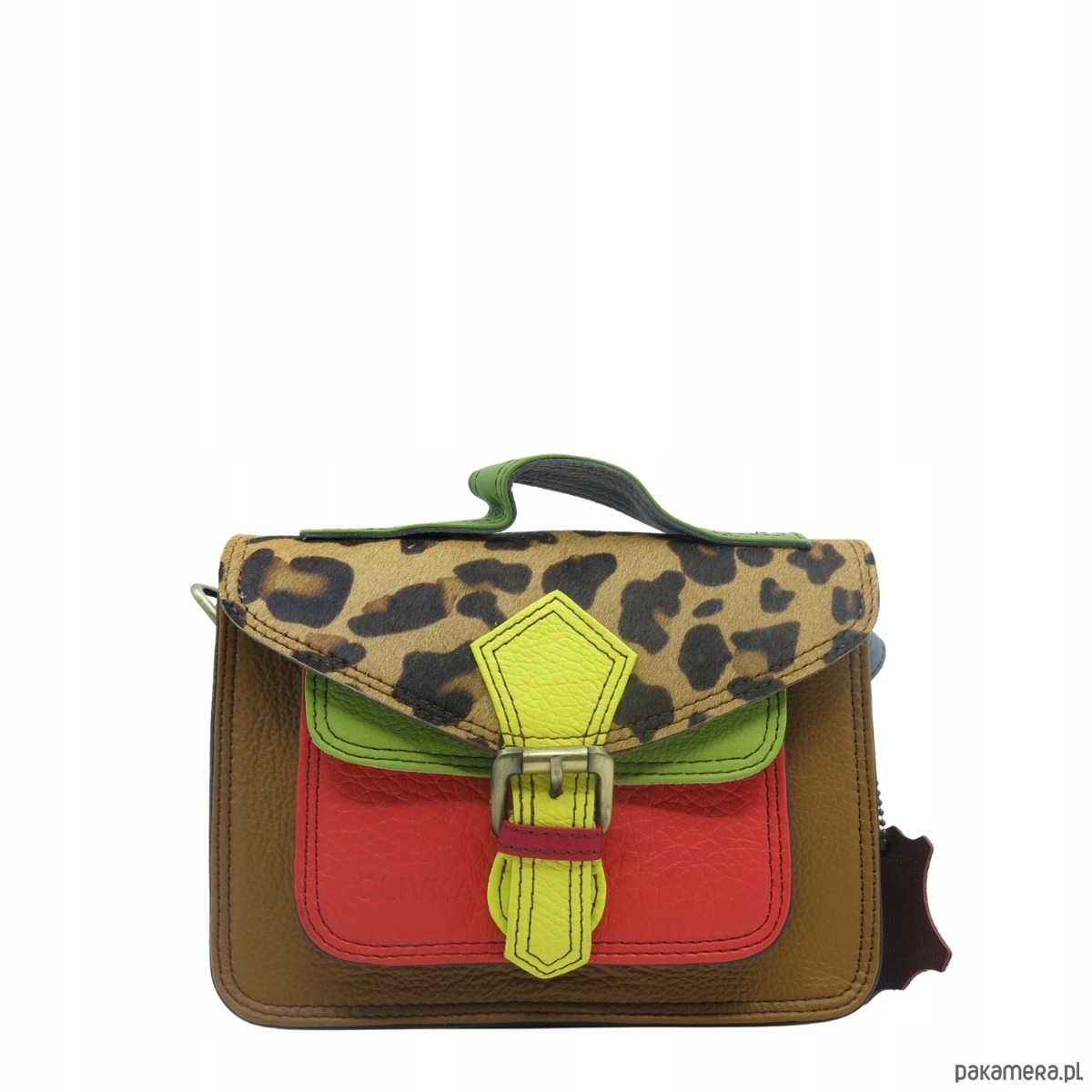 Torebka damska skórzana listonoszka kolorowa rączka regulowany pasek OLIVKA