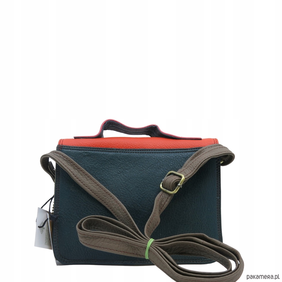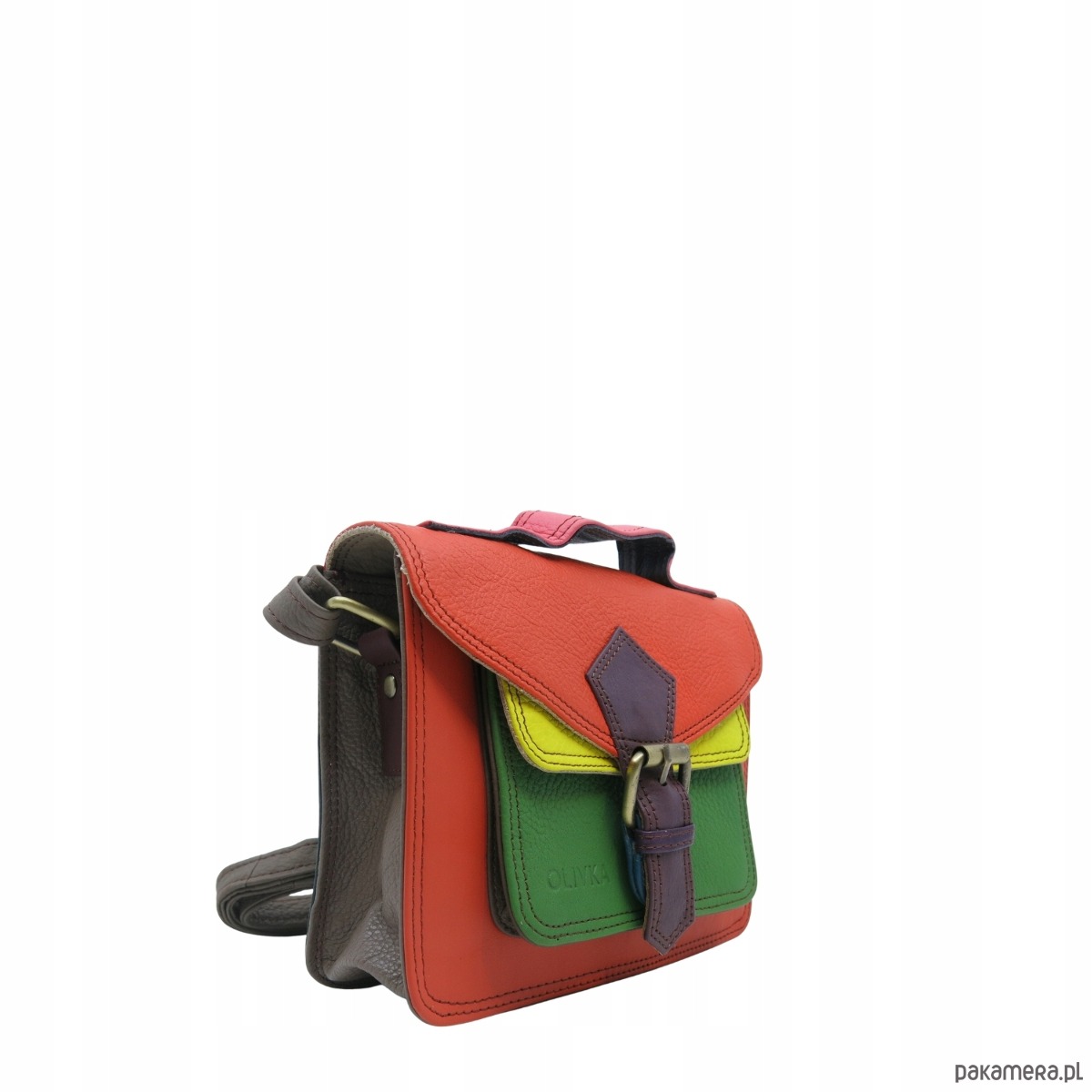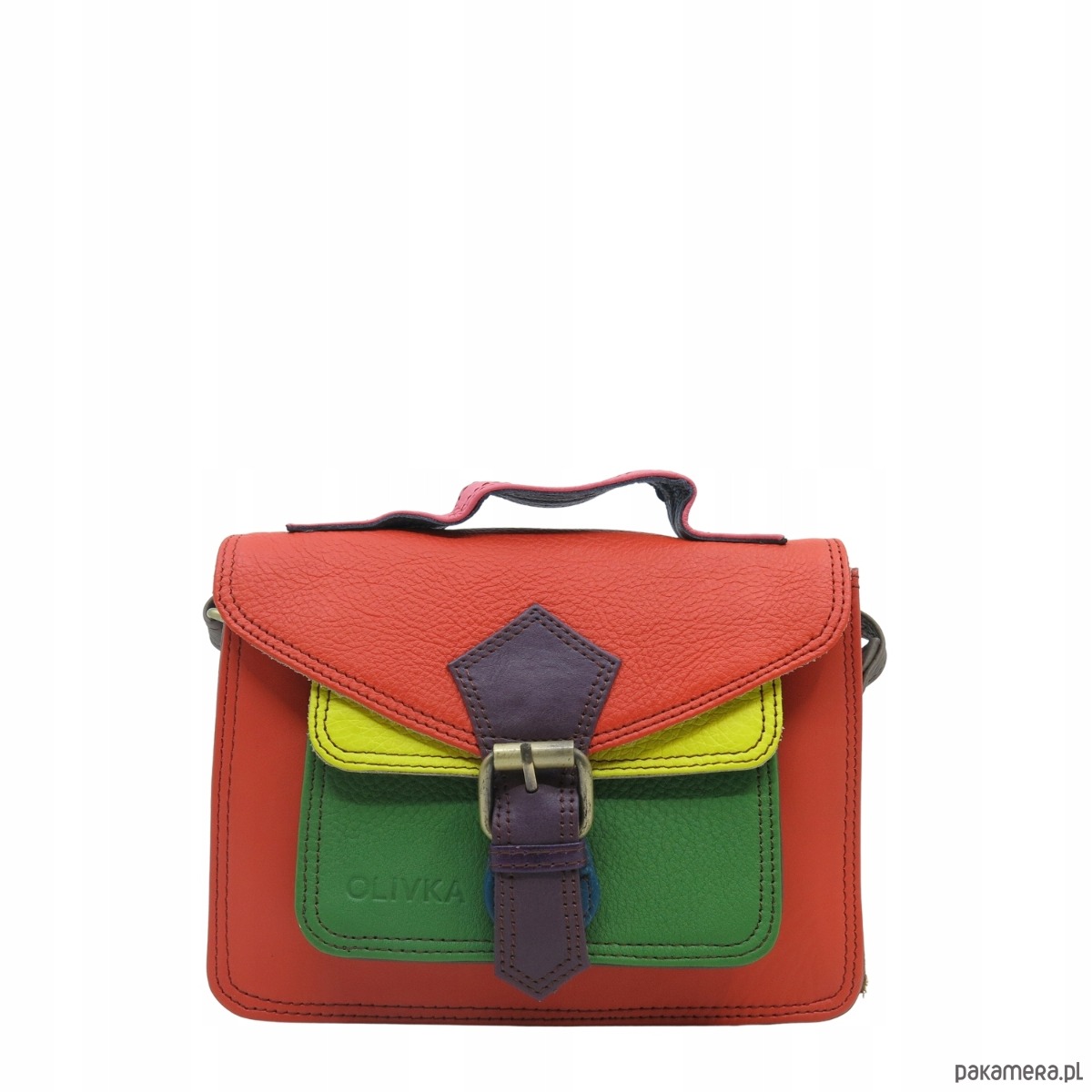 Torebka damska skórzana listonoszka kolorowa rączka regulowany pasek OLIVKA