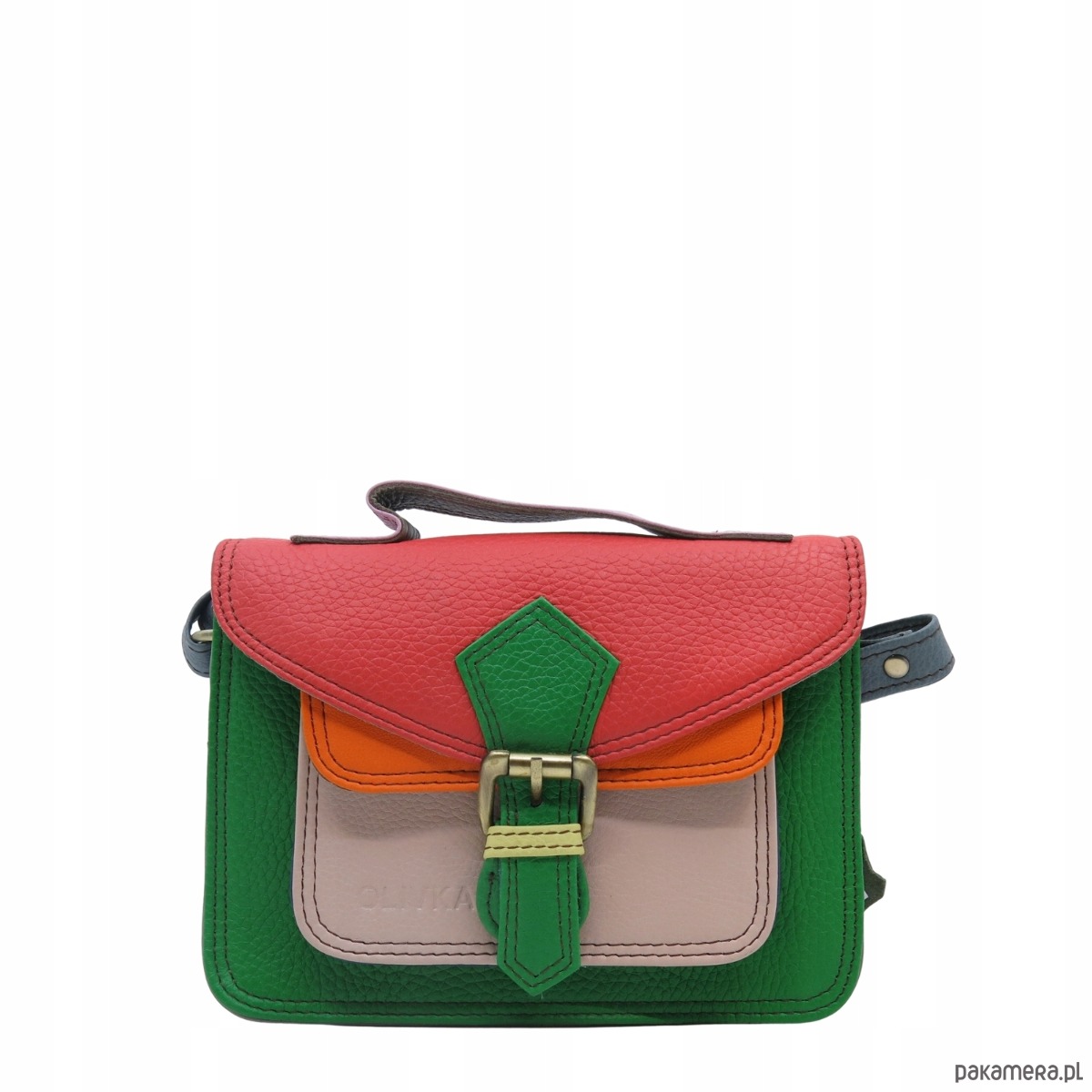 Torebka damska skórzana listonoszka kolorowa rączka regulowany pasek OLIVKA