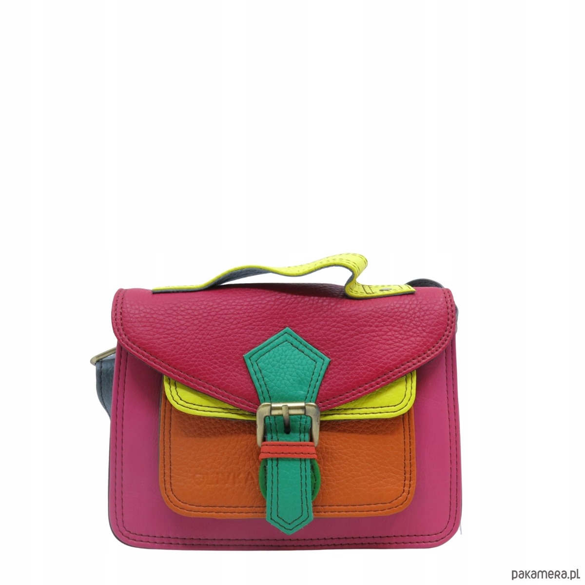 Torebka damska skórzana listonoszka kolorowa rączka regulowany pasek OLIVKA